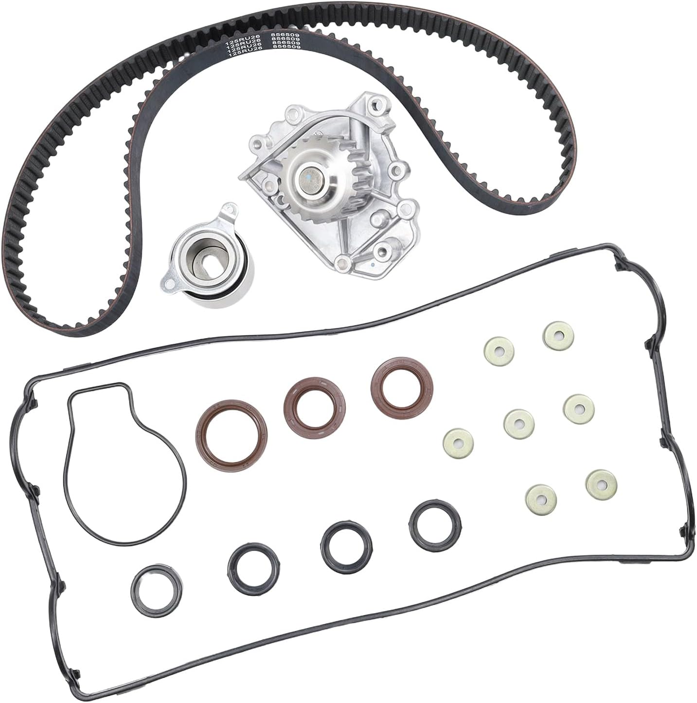 Kirogi Timing Belt Kit with Water Pump Compatible with Fiesta 2014-2019, Escape 2013-2016, Transit 2014-2016 1.6L 2013-2020 Direct Timing Belt Set Replacement OE Number BE8Z-6K254-A BE8Z-6268-C Interchange Part Number: BE8Z-6K254-A BE8Z-6268-C BE8Z6K254A BE8Z6268C Timing Belt Kit with Water Pump Vehicle Compatible Models: Compatible with 2013-2016 Escape 1.6L 1596cc 97cid L4 Dohc Turbocharged, (16 Valve) Compatible with 2014-2019 Fiesta 1.6L1596cc 97cid L4 Dohc Turbocharged, (16 Valve) Compatible with 2011-2019 Fiesta 1.6L 1596cc 97cid L4 Dohc, (16 Valve) Compatible with 2013-2014 Fusion 1.6L 1596cc 97cid L4 Dohc Turbocharged, (16 Valve) Compatible with 2014-2016 Transit Connect 1.6L 1596cc 97cid L4 Dohc Turbocharged, (16 Valve) Please carefully verify the following information before placing your order: 1. Ensure the product images match your old part 2. Confirm the product part number is the same with yours 3. Check that the compatible vehicle model matches your car Package Content: 1 * Tensioner 1 * Oil Seal 1 * Timing Belt 1 * Water pump When Should You Replace a Car Timing Chain Kit? 1. Reaching replacement intervals 2. Signs of failure 3. Damage to timing belt related parts 4. Replaced in conjunction with engine repair