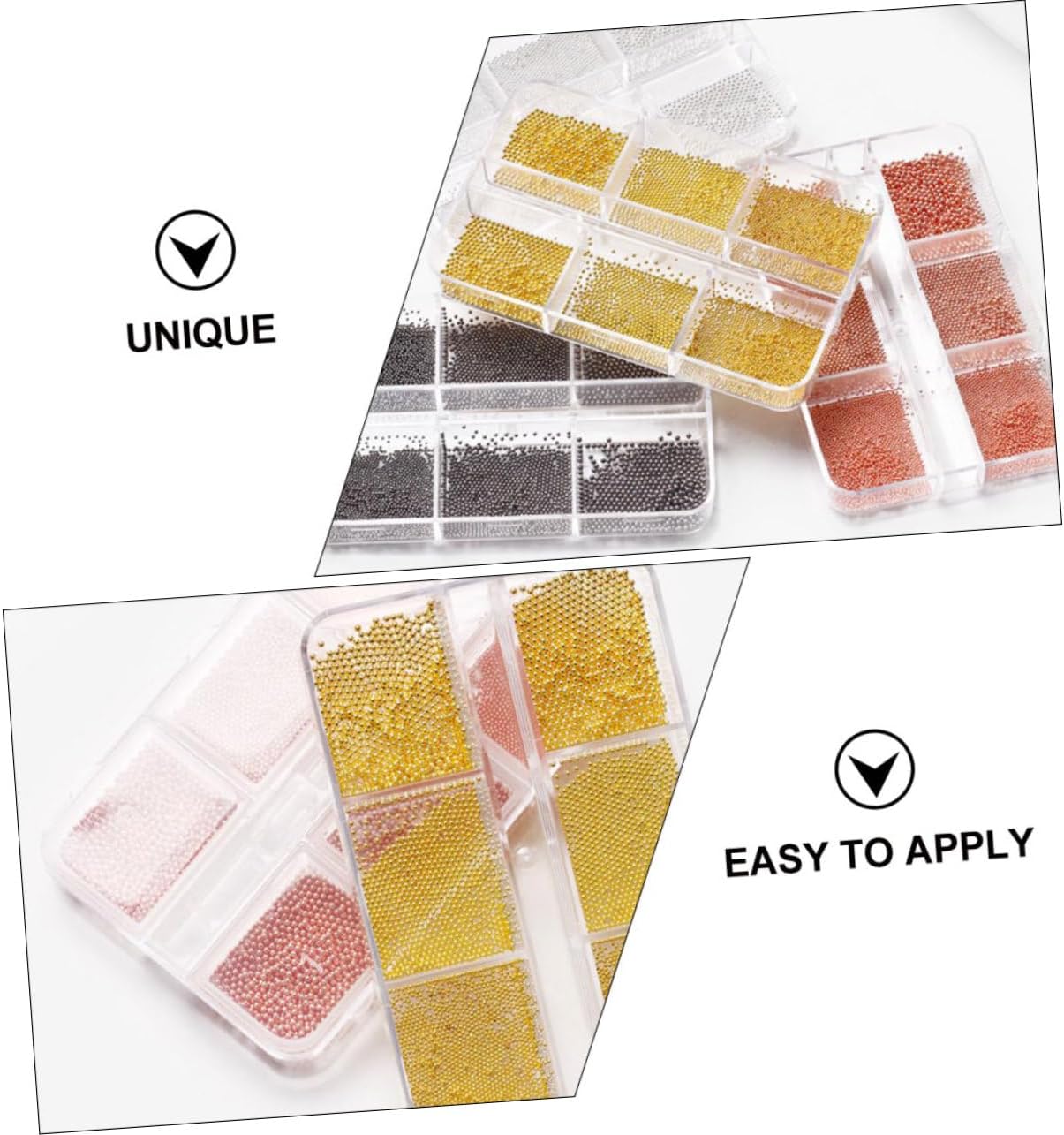 Package List 10 x Boxes of Nail Beads Characteristics -Material:Steel nail art accessories -Size:7.50X5.30X1.20cm/2.95X2.08X0.47in nail beads for DIY -Note:These beads come with different diameters, and they are 1mm,0.75mm and 0.5mm decorative nail studs. -Color:Assorted Color nail decor -Steel beads designs great for natural or artificial nails. It Can be used with powders, and nail powders metal nail beads. -Bring charm and to your nails with your own creativity. Add glamour to your home decor, phones or DIY crafts beads for nail art -Versatile steel ball nail decorations suitable for any type of nails, Can be used to enhance decor nail jewels. - for jewelry making and other decorative projects. Give a unique and to your nails mini beads for diy. -Ideal for personal professional use home or in salons. Suitable for both beginners and experts metal beads.Goods Informationdecorative beads Ideal for both home use and professional salons, these decorations are suitable for beginners and experts alike.3d beads With different sizes beads design, they can be used with all UV nail polishes, DIP powders, and nail powders to make your nails look elegant and special