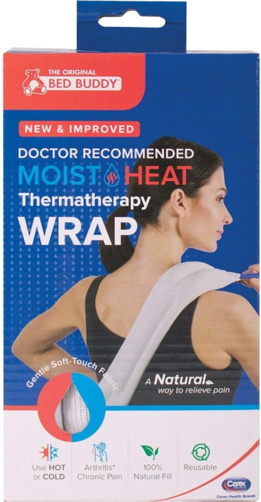 Especially beneficial for: arthritis, sore muscles, joint stiffness, chronic pain, sports injuries and warming up. The original 'moist' heat pack designed for use in soothing sore muscles, aches, and pains. Use it hot or cold. Long lasting, reusable, ready in minutes. Stays heated for up to an hour. One size fits all. Filled with 100% natural grains, easy and safe. Doctor recommended. Especially beneficial for: arthritis, sore muscles, joint stiffness, chronic pain, sports injuries or just warming up.