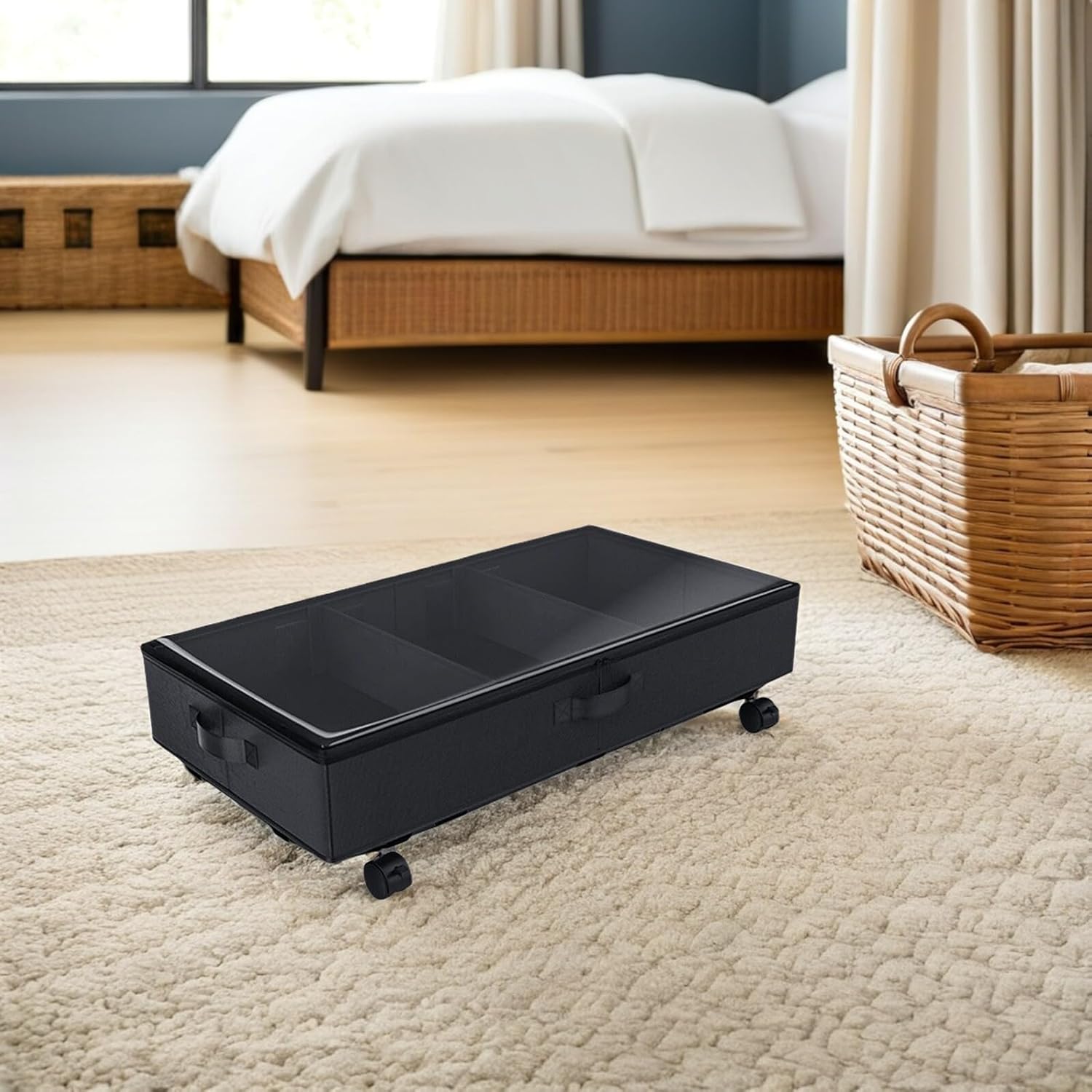 Package Include 1 x Under Bed Storage Bag Characteristics -Material:ABS, oxford cloth, iron -Size:80.00X42.00X16.00cm/31.44X16.51X6.29in -Product Info:Under-bed storage truck -Effortless mobility: easily move and retrieve items with the sliding wheels storage containers for under bed. -Color:Black - This storage bag with wheel is great for storage, moving, shipping, laundry and much more room storage bag. - The under bag organizer bag is made with fine workmanship, to ensure the practicality and durability underbed storage bag. - The zipper storage bin is specially designed for the storage of clothes, quilt, blanket, bedding, etc large capacity clothes storage bag. - You can easily identify the items inside through the transparent PVC window and quickly remove the lid to remove them under bed clothes organizers.Goods Descriptionunder bed storage container This storage bag is made of ABS, oxford cloth, iron material, which is and safe, and it keeps your things organized, such as quilt, clothing, blanket, etc.containers for organizing under bed It can be easy and convenient for you to carry or grab the handles on the bag and pull the bed