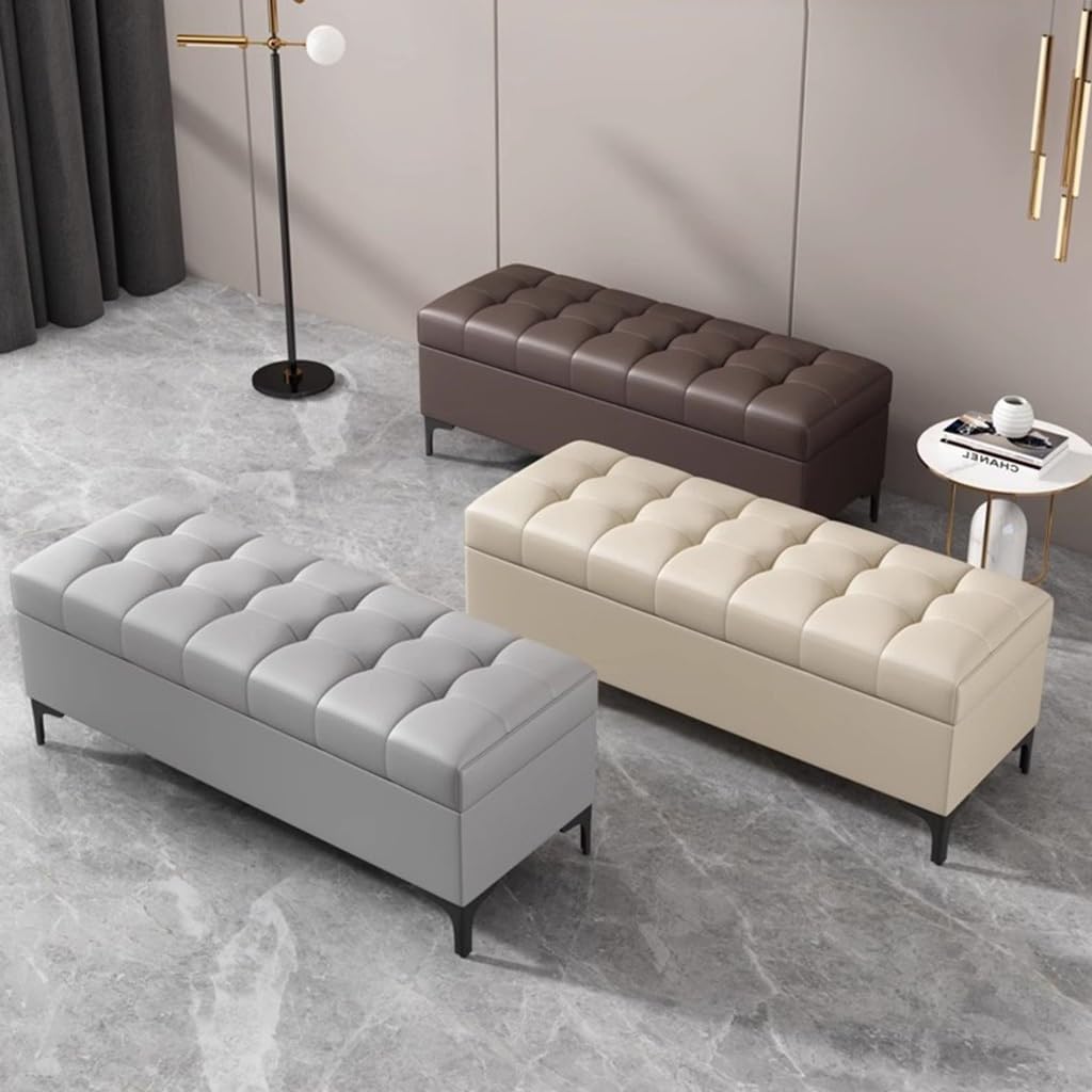 Why not take this ottoman storage chest to make storage convenient and optimize your space? It suitable for multiple items - blankets, toys, shoes, etc. A great addition to your room, when you need extra storage space.【Product specification】:--Product name: storage stool--Product material: Wood & Faux Leather & Metal--Maximum load: 150kg/330 lbs--Applicable scenarios: It can be used as a shoe-changing stool, makeup stool, dressing stool, living room leisure stool, sofa and coffee table stool, strong and durable enough to hold toys, books and other items【Tips】: We only sell stool, other items are props. All data is measured by hand with a slight error. Due to physical factors such as light, camera color and lighting, there may be subtle color differences.