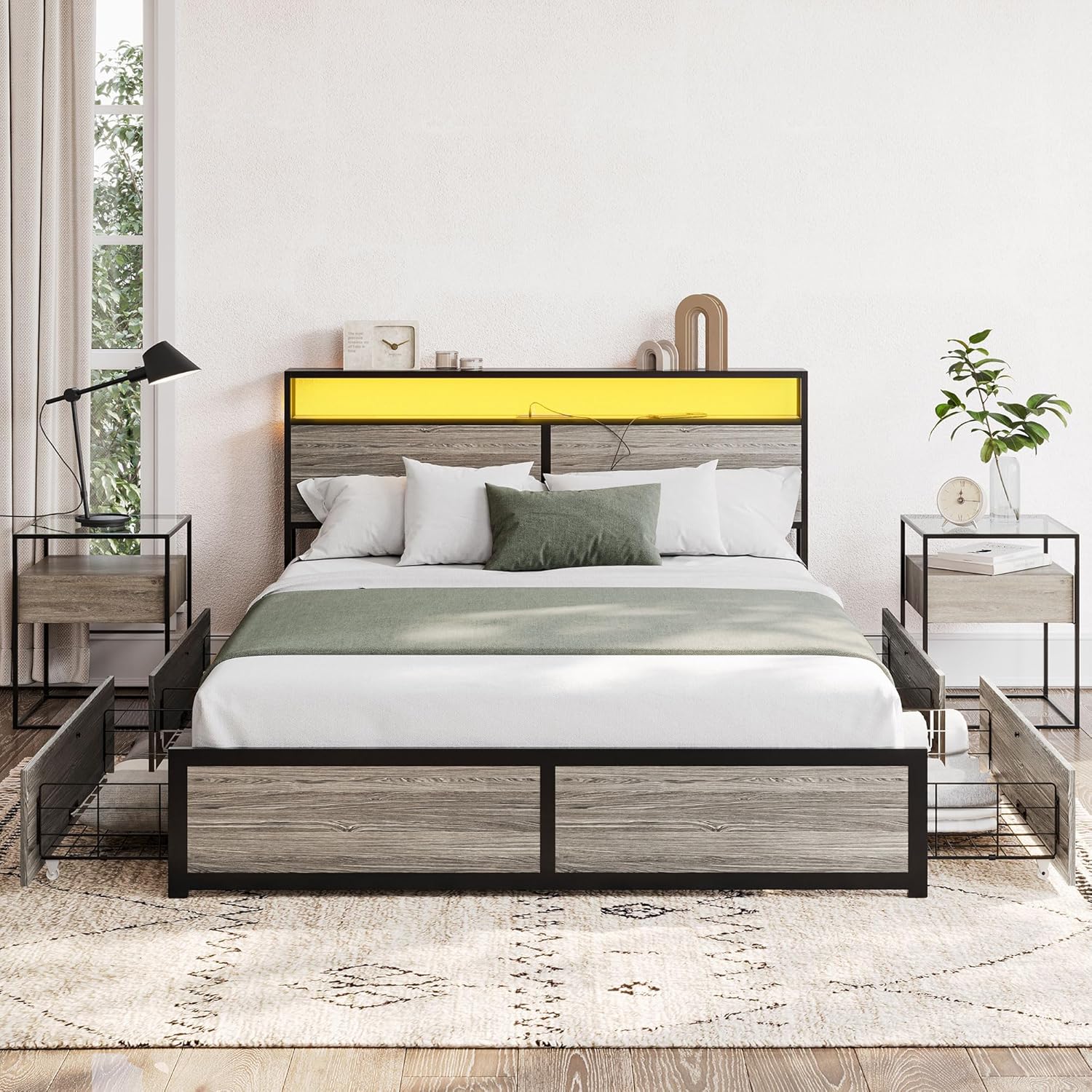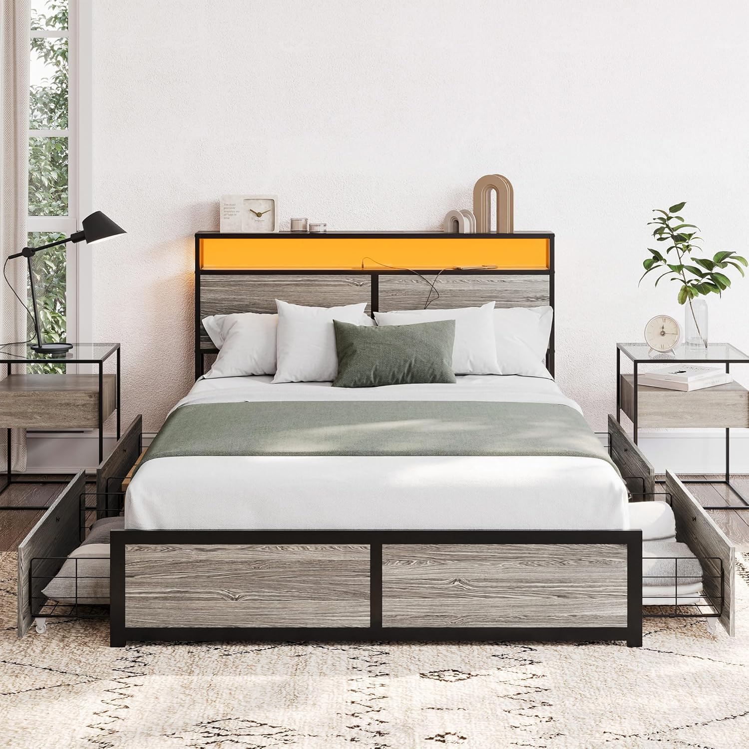 | Item Type Name | BELLEZE Full Size Bed Frame with 2-Tier Storage Headboard and 4 Drawers Under Bed, Sturdy Metal Platform Bed with Remote Control RGB LED Light and Ultra-Fast USB Type A/C Outlet, No Box Spring Needed |