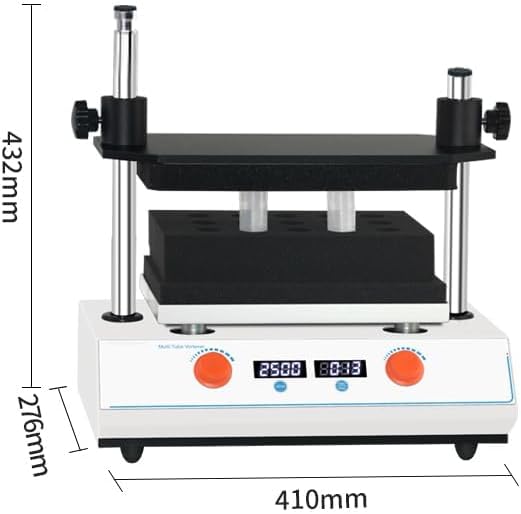 Features: One-touch knob operation mode, simple and easy to use; Any set time within the range of 1min~99h59min, with automatic beeping at the end of the run; A variety of sponge test tube racks available for a wide range of uses; Soft start, even acceleration, effectively avoiding sample splashing; Brushless DC motor drive, precise speed, long life and maintenance-free; Simple operation panel, precise control of microprocessor volume, real-time LED display of speed and time; Humanized program design with two built-in operation modes of pointing and timing. Specifications: Certification: CE Speed: 500-2500rpm Amplitude: 4mm Time range: 1min-99h59min Max load capacity: 4.5kgs Samples: 15-50 Input power:70w Size: 410*276*432mm Weight: 20kg