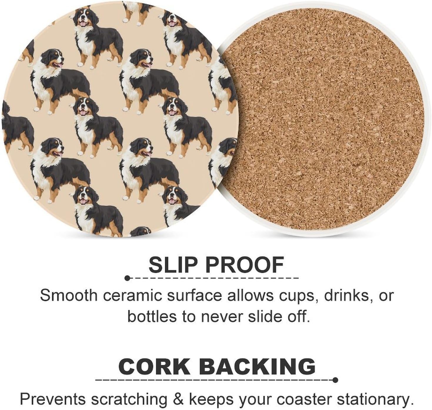 Cute Printed Round Drinks Absorbent Ceramic Coaster with Cork Base Suitable for Kinds of Mugs, Cups, Prevent Tabletop Wear And Scratches, and is Easy to Clean