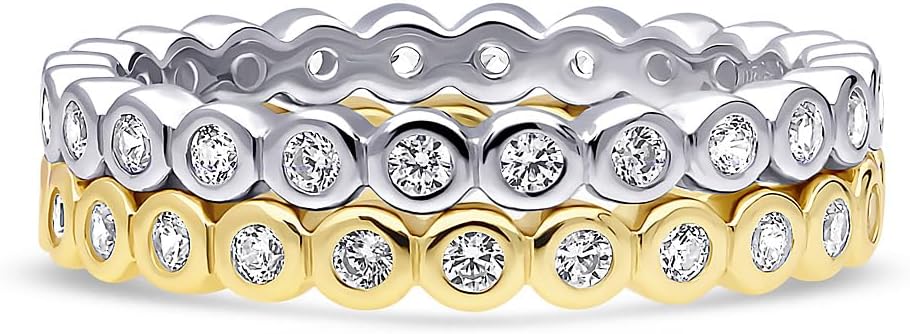 Stackable sterling silver CZ ring set with charming bubble details. Designed for layering, these band rings bring subtle sparkle and refined style to any outfit. Crafted with fine 925 sterling silver. Set with cubic zirconia CZ. Imported.DISCLAIMER: Carat weight of CZ is approximate. Intended for adult women.