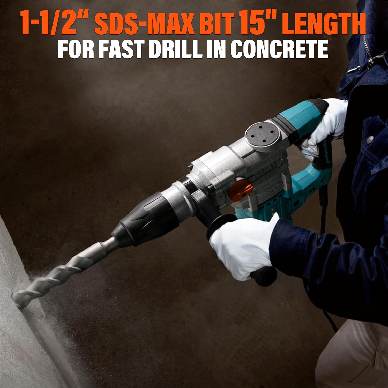 Heavy Duty Rotary Hammer Drill with Extra 1-1/2 Inch x 15 Inch SDS Max Drill Bit