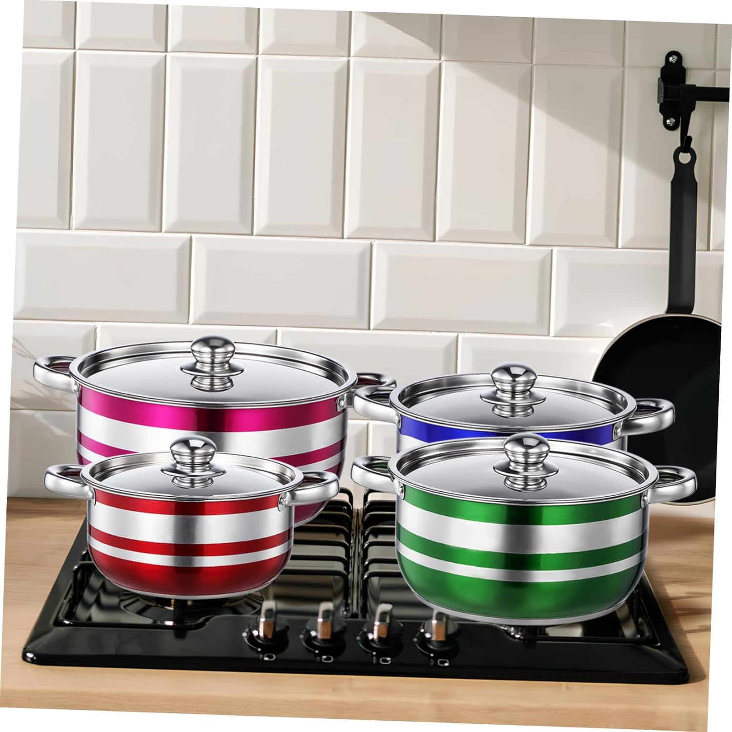 Package List 4 x stainless steel pots Characteristics -Product Info:Cookware Set -Color:Assorted Color pots stainless steel -Sturdy material: made from stainless steel, this cookware set is resistant to stains, ensuring lasting performance and a polished look in your kitchen induction cookware -Size:23.50X23.50X10.50cm/9.24X9.24X4.13in pot stainless steel -Elegant design: the sleek and modern appearance enhances your kitchen'aesthetic, a perfect present or addition to your cookware collection stainless steel pots -Size:25.50X25.50X11.70cm/10.02X10.02X4.60in induction compatible cookware -Versatile compatibility: designed to work seamlessly with induction cooktops, gas stoves, and electric ranges, suitable for types of cooking surfaces cooking pots -Size:21.50X21.50X10.00cm/8.45X8.45X3.93in induction pot -Efficient heat distribution: the pots offer even heat distribution for faster cooking, saving time in the kitchen induction pots -Ergonomic handles: features heat resistant, antislip handles that provide a comfortable grip, ensuring safety and ease during cooking steel cookware -Size:19.50X19.50X9.00cm/7.66X7.66X3.54in steel pot -Material:Stainless steel steel potsGoods Informationstainless pots Crafted from stainless steel, this cookware set is designed for durability and lasting performance.cookware Ideal for a variety of cooking tasks, these pots are perfect for preparing soups, stews, and other delicious meals with ease.stainless steel pots The sleek and modern design adds a touch of elegance to any kitchen