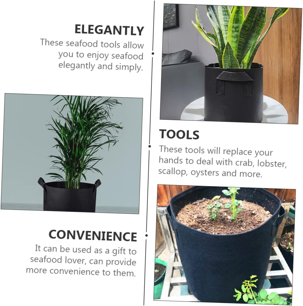 • Grow bags: with solid and handle design, which can be moved easily and safely,vegetable grow bags