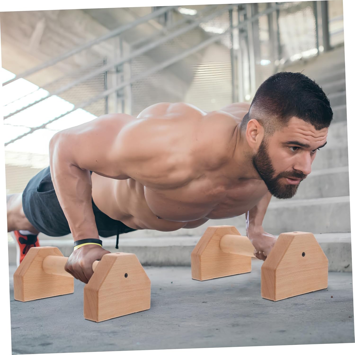 Package List 2 x push up handles Features -Size:25.00X14.00X11.00cm/9.82X5.50X4.32in home - Wooden material: The push-up stand is made of sturdy and selected wood material, ensuring durability and longevity push up exercise equipment. -Color:Beige - Ergonomic design: The push-up handle is ergonomically designed to provide a comfortable and during exercise Fitness Equipment. - Strong weight capacity: The push-up handle is capable of supporting a strong weight capacity, allowing for intense and challenging workouts machine. - Easy to use: The push-up stand is convenient to use and suitable for both home and gym workouts, unmissable for fitness home gym equipment for women. - Strong stability: The push-up bar features a thickened and anti-slip bottom design, providing better stability and safety during use barbell stand. -Material:Wood Fitness AccessoryGoods InformationPush-up Bars For Men Introducing our Wooden Push-Up Bars, the great exercise equipment for both indoor and outdoor use.parallel bars This woooden push-up bar is built to last and has great weight-bearing capacity.push up bars Its ergonomic design fits to the principles of ergonomics, providing a comfortable workout experience