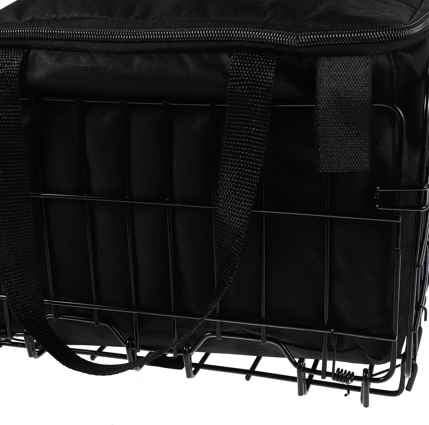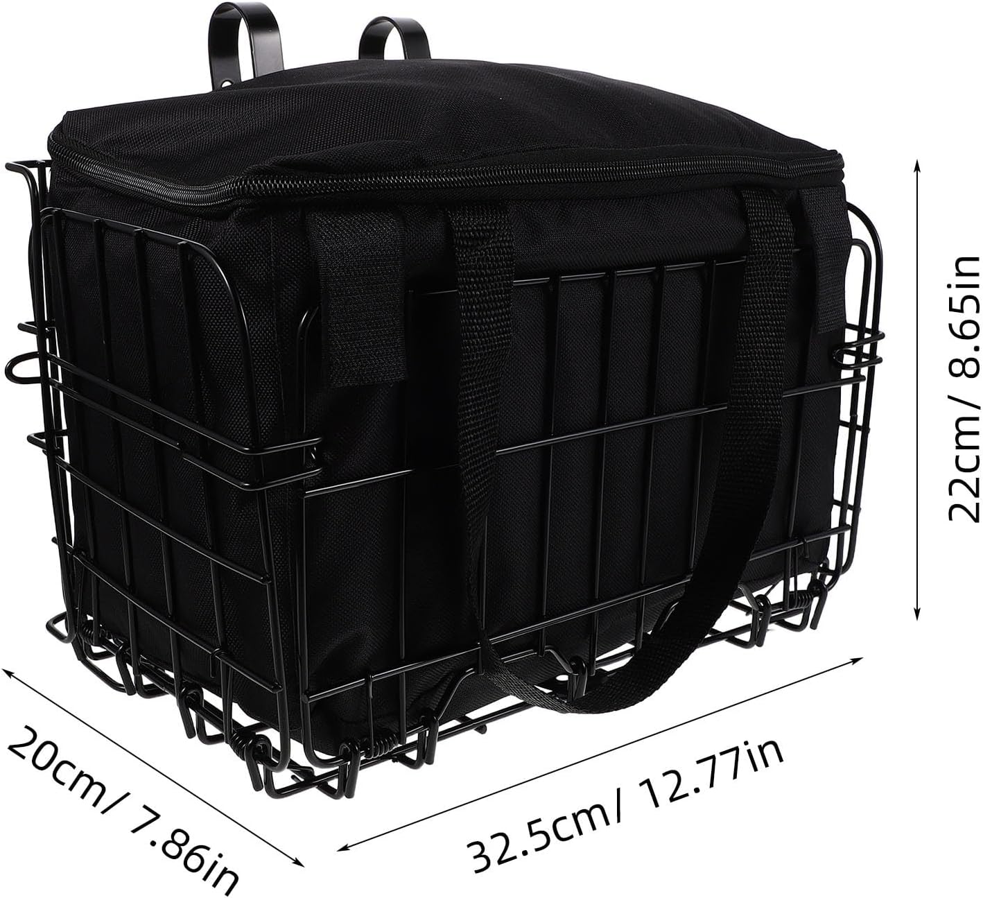 Description Enhance your cycling experience with this durable and stylish bike basket. Its foldable structure makes it a space-saving solution for urban cyclists, while the rust-resistant material ensures use. Whether you're heading , exploring trails, or commuting to work, this basket provides ample storage and convenience for all your needs. Features -Color:Black -Material:Metal, fabric -Size:32.50X22.00X20.00cm/12.77X8.65X7.86in -Ample capacity: designed to hold a significant amount of goods, suitable for everyday use or picnics -Convenient detachable bag: enables easy removal and carrying of the storage bag, facilitating quick item access -Compact folding: the basket can be folded to save space, suitable for small living spaces or travel -Robust build: constructed from metal and fabric, ensuring it withstands regular use and minimizes maintenance -Adaptable installation: fits a variety of bike types, including mountain and road bikes, broadening its usability