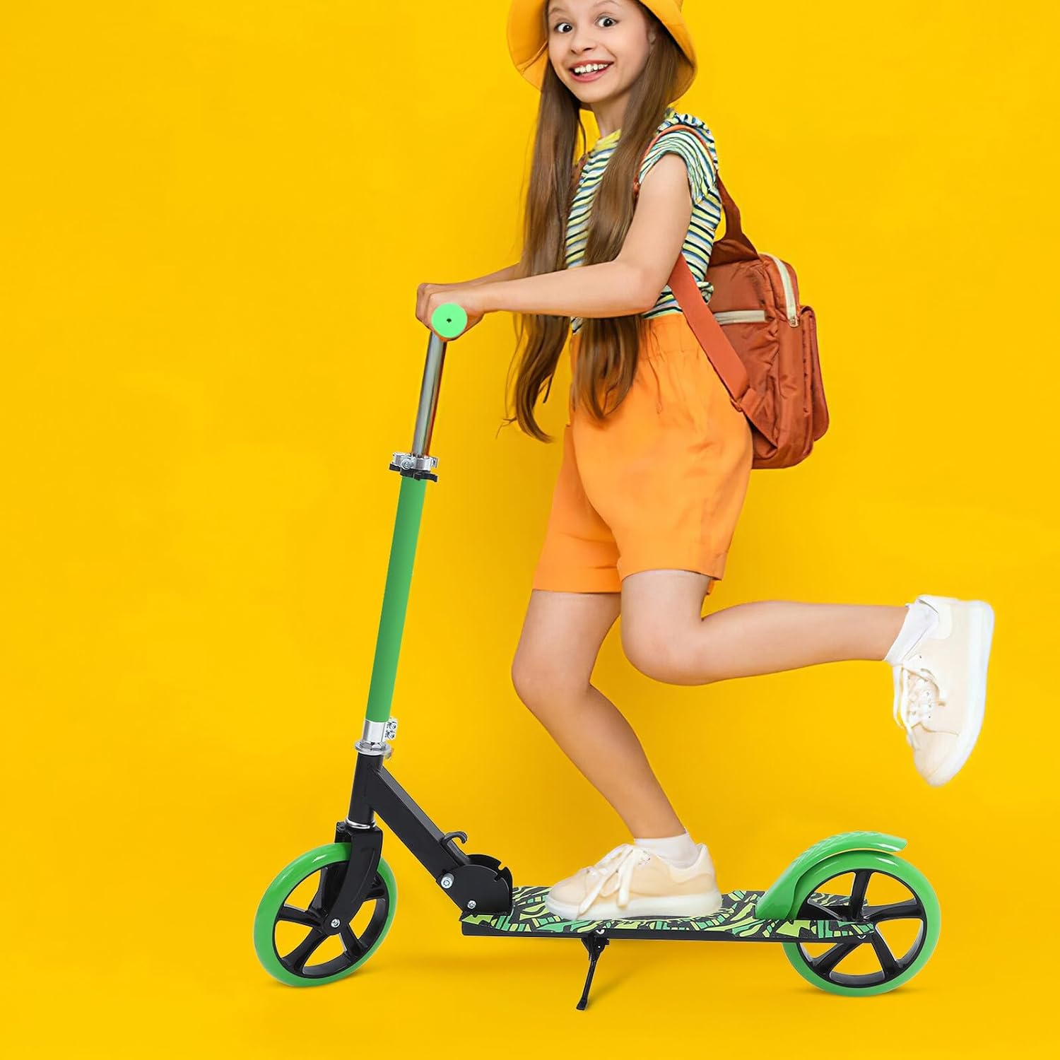 Package Include 1 x scooter Characteristics -Product Info:Adult scooter - Color: Green scooters -Material:PU,iron Collapsible kick scooter - Size: 92.00X89.00X36.00cm/36.16X34.98X14.15in outdoor scooter -With its fashionable color, this scooter is sure to turn heads wherever you go, making it a cute and trendy choice for young riders folding kick scooter. -Suitable for , this scooter is designed to cater to the needs of young riders who are looking for a fun and efficient way to get around town or campus scooter . -Whether you're commuting to school or work, this scooter is an ideal choice for city and campus commuting, thanks to its lightweight and compact design kick scooters. -With its foldable design, this scooter is easy to carry and store, making it a great choice for those who need to take it on public transportation or store it in a small space teen scooters for boys. -The large 2-wheel design of this scooter provides extra stability and balance, making it easier for riders to maintain control and stay safe while riding kick scooter for boy.Goods Informationoutdoor scooter Adopted of reliable material, this product is practical and durable for long time use, which is not easy to get deformed and bring you much convenience.scooter for boy If you are looking for a kick scooter, then your research is over here.scooter for teen That's because our product can meet your need