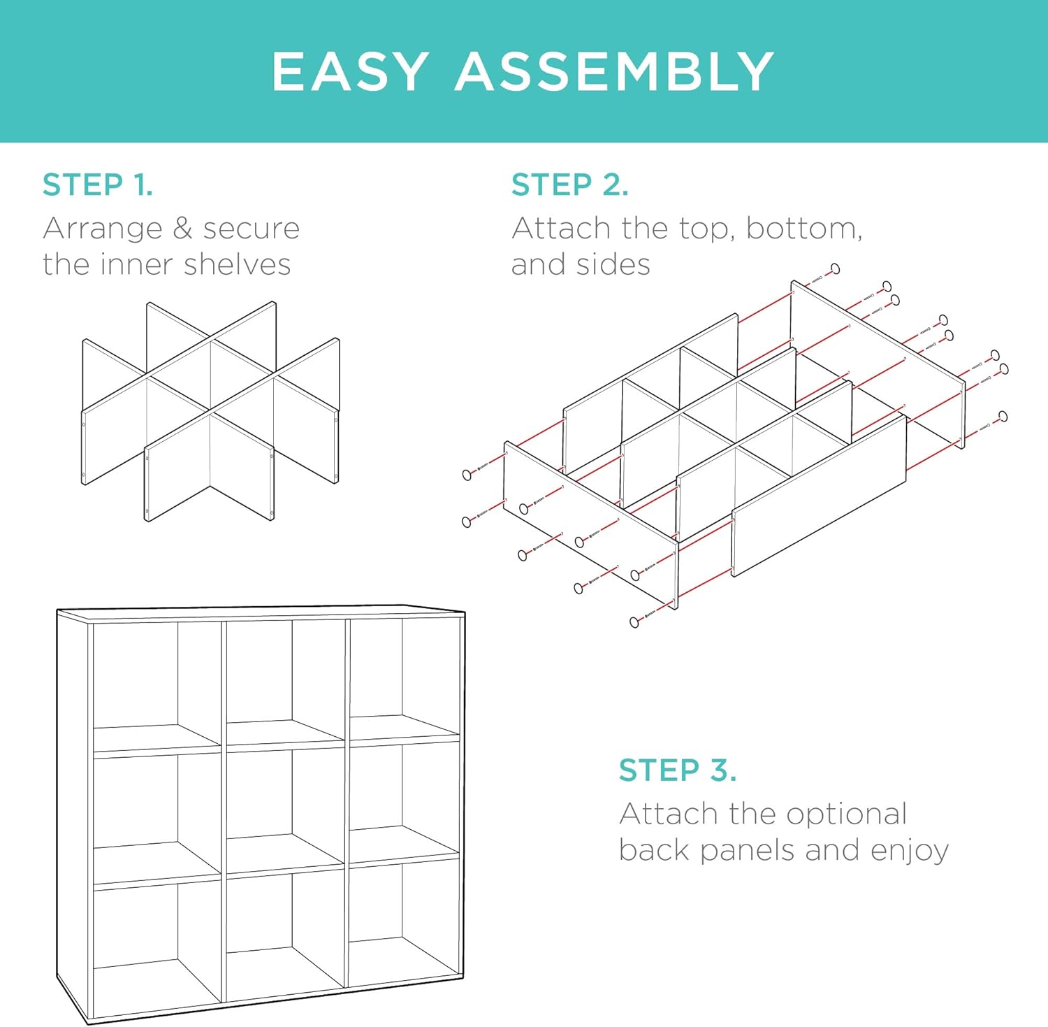 | Model Name | 9-Cube Bookshelf Storage Display w/ 3 Removable Panels, Customizable Design |