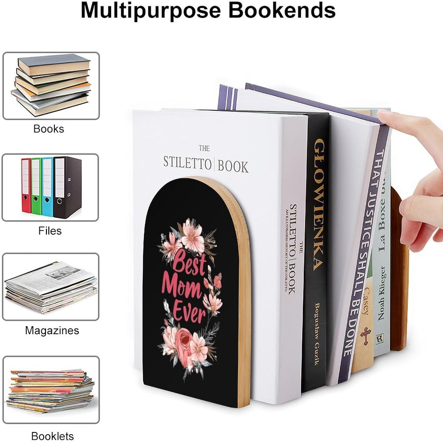 Custom Bookend Wood Book Ends for Shelves Cute Book Shelf Holder Home Decorative,the book end protect your bookshelf or furniture from scratching when you move the bookends