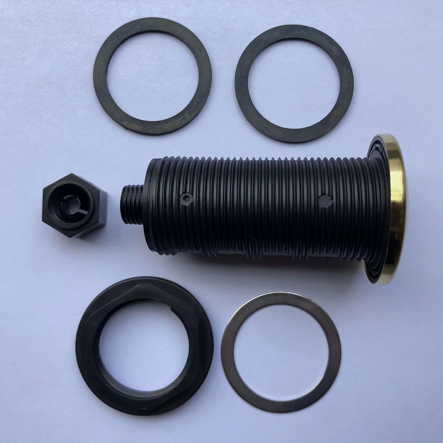 BESTILL Garbage Disposal Air Switch Kit with Dual Outlet AdapterQuestion: Is this button plastic or stainless steel?Answer: No, it’s neither plastic nor stainless steel. The cover of air activated switch button is durable brass constructed, with Brushed Brass Finished.Question: Does this air switch kit work with my InSinkErator Badger 5, 1/2 HP Food Waste Disposer?Answer: Yes, it does. The air switch unit fits any brand or model garbage disposals, perfectly well for InSinkErator, Waste King, Moen, GE, Kitchen Aid, Whirlpool, Waste Maid, Emerson, Goplus, Frigidaire, Yescom, BECBAS and so on.(Electrical Rating: 22A,125/250VAC)Question: How large hole should be drilled in my granite countertop?Answer: The actual diameter of the disposal air button is 1.26’’, it’s ok as long as your drilled hole is not less than 1.26’’. In order to install the garbage disposal switch better, it is recommended that you drill a 1.375’’(1-3/8'') hole in your sink countertop.Question: Do you have to keep holding the button to keep the power flowing?Answer: No, one push on and one push off. For this dual outlet design, one outlet is used to control the food waste disposer by air button, while the other for hot water dispenser or dishwasher is directly powered. Package Include:1x Dual Outlet Power Module1x 3-1/3 Ft Power Cord2x 5 Ft Air Flexible Pipe2x Brushed Gold Air Switch Button2x 5cm*2cm 3M Super Strength Double Sided TapeSeveral Set Screws