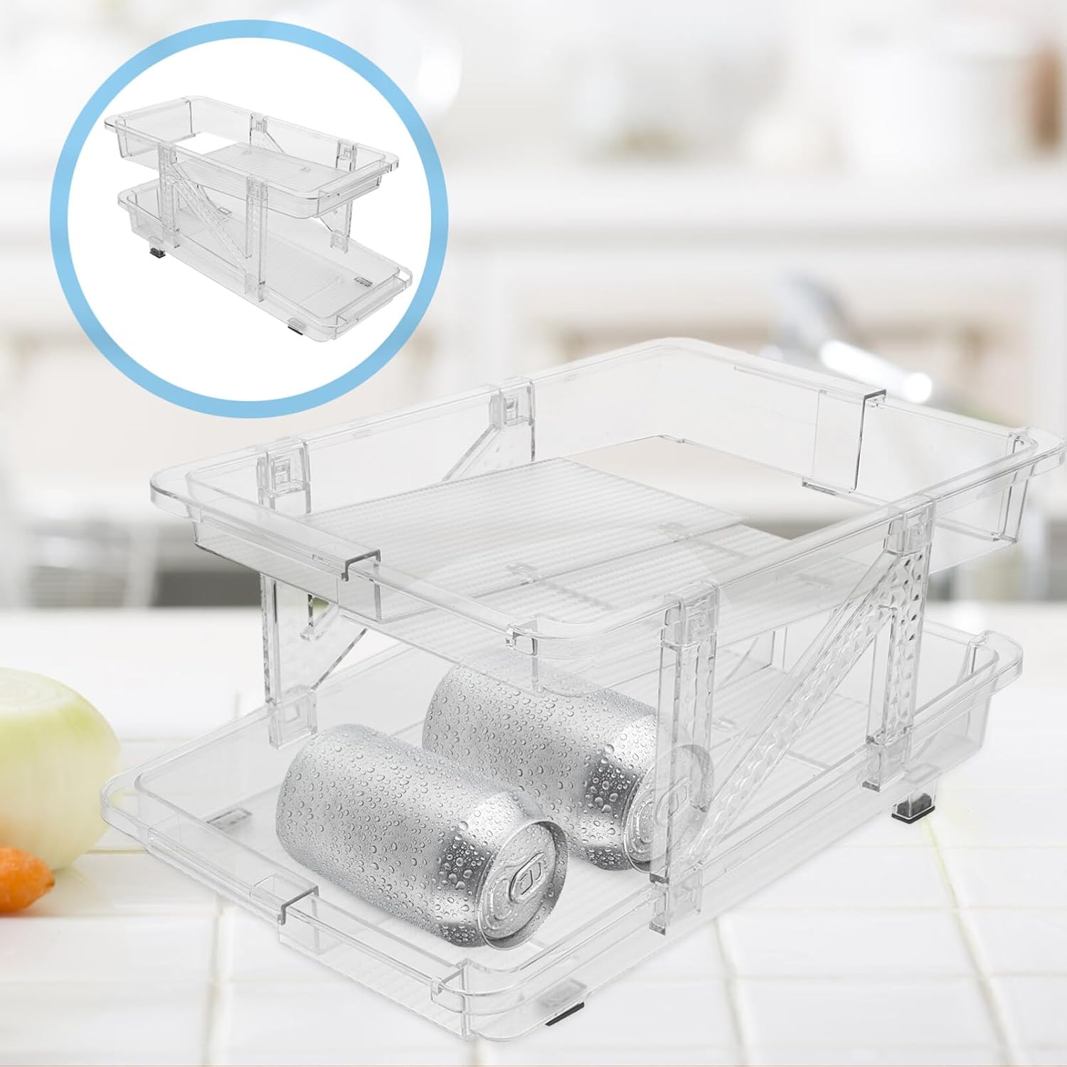 DescriptionOrganizer Dispenser for refrigerator, Rolling Can Dispenser Fridge Beer, Rolling Drink Organizer for Fridge, Pantry, Cabinets, Freezer, KitchenFeaturesColor:As ShownMaterial:PETSize:35.20X18.20X7.20cm/13.83X7.15X2.83in- Soda Can Dispenser: Safe and reliable plastic material and fine craftsmanship, durable and sturdy.- Drink Organizer for Fridge: With this can organizer, you can sort and store your drinks in the fridge.-Rolling Beverage Can: with transparent design, you can easily see the drinks inside the holder. Multi-functional refrigerator organization, suitable for kitchen, bar, cafe, etc, widely applicable.- Can Organizer Dispenser for refrigerator: perfect housewarming gift for family and friends, they will love this organizer.- Clear Beer Can Organizer: can organizer can hold multiple beverage bottles, save storage space in your refrigerator.Package Including1 x Soda Can Organizer