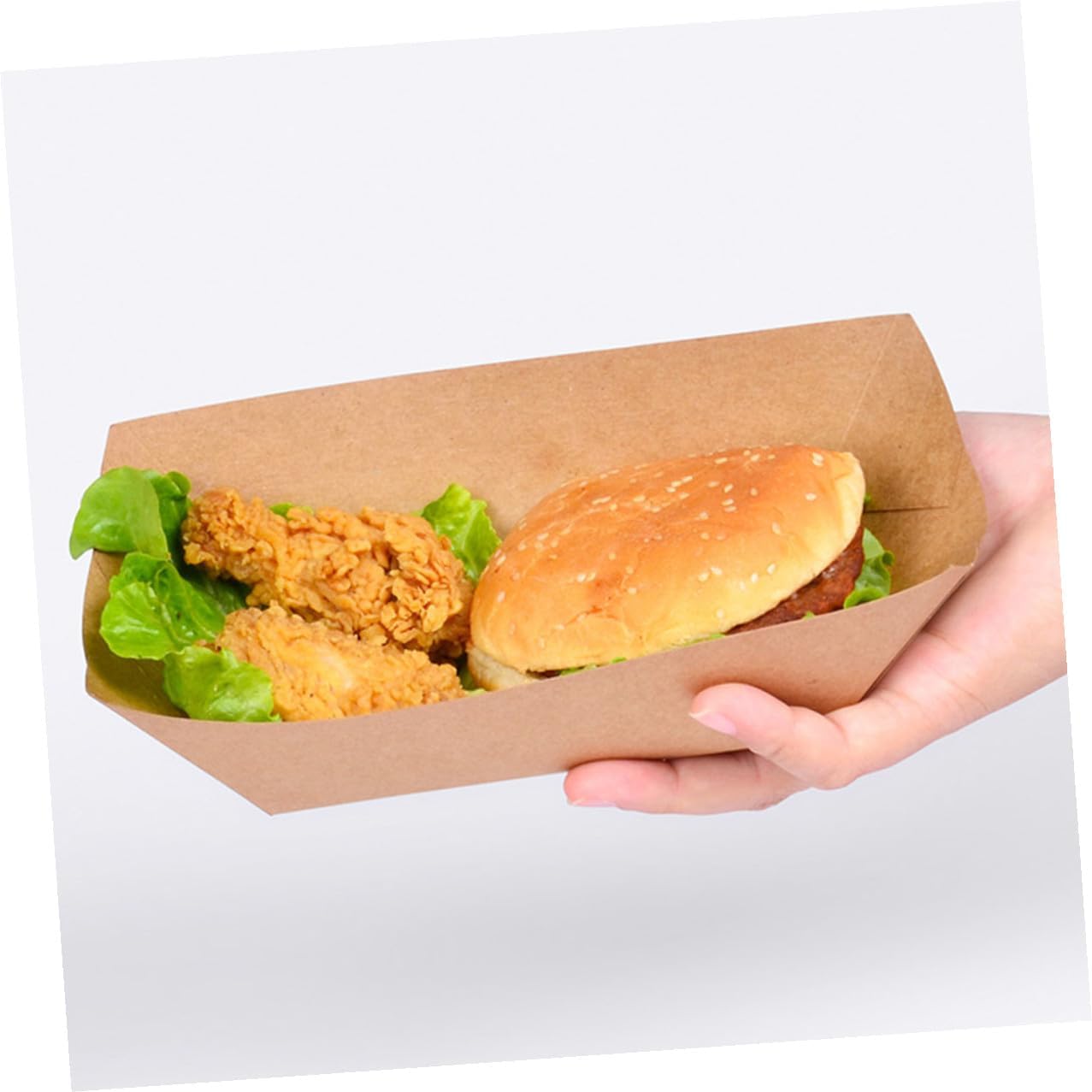 Package List Paper Food Boxes Characteristics -Material: Paper -Product Info:Oil-proof meal box -Color: Khaki -Size: 20.00X15.00X4.50cm/7.86X5.89X1.77in -This paper food box is firm for a messy-free eating even for those that have sauce, condiments, and dips with it food boxes. -Frying snack boxes can be used to store popcorn, snacks, french fries, nuts, etc fried snacks container. -With simple color design, unique and vivid, for your party to add atmosphere. -These snack holders are grease-proof to keep oily spots from forming when filled with fried foods. Avoid soiling hands and clothes with oils while enjoying snacks takeaway food containers. -Made from sturdy and reliable paper, great value for indoor and outdoor usage french fries boxes.Goods Informationfrench fry holder Disposable snack boxes, throw when used up, save time and effort, and bring you great convenience.food packaging boxes Great for holding greasy foods and treats like hot dogs, fries, , and tacos.fried food holder Need a container for small snacks? Need a container for fruits and veggie dip? Our snack holder can meet your needs