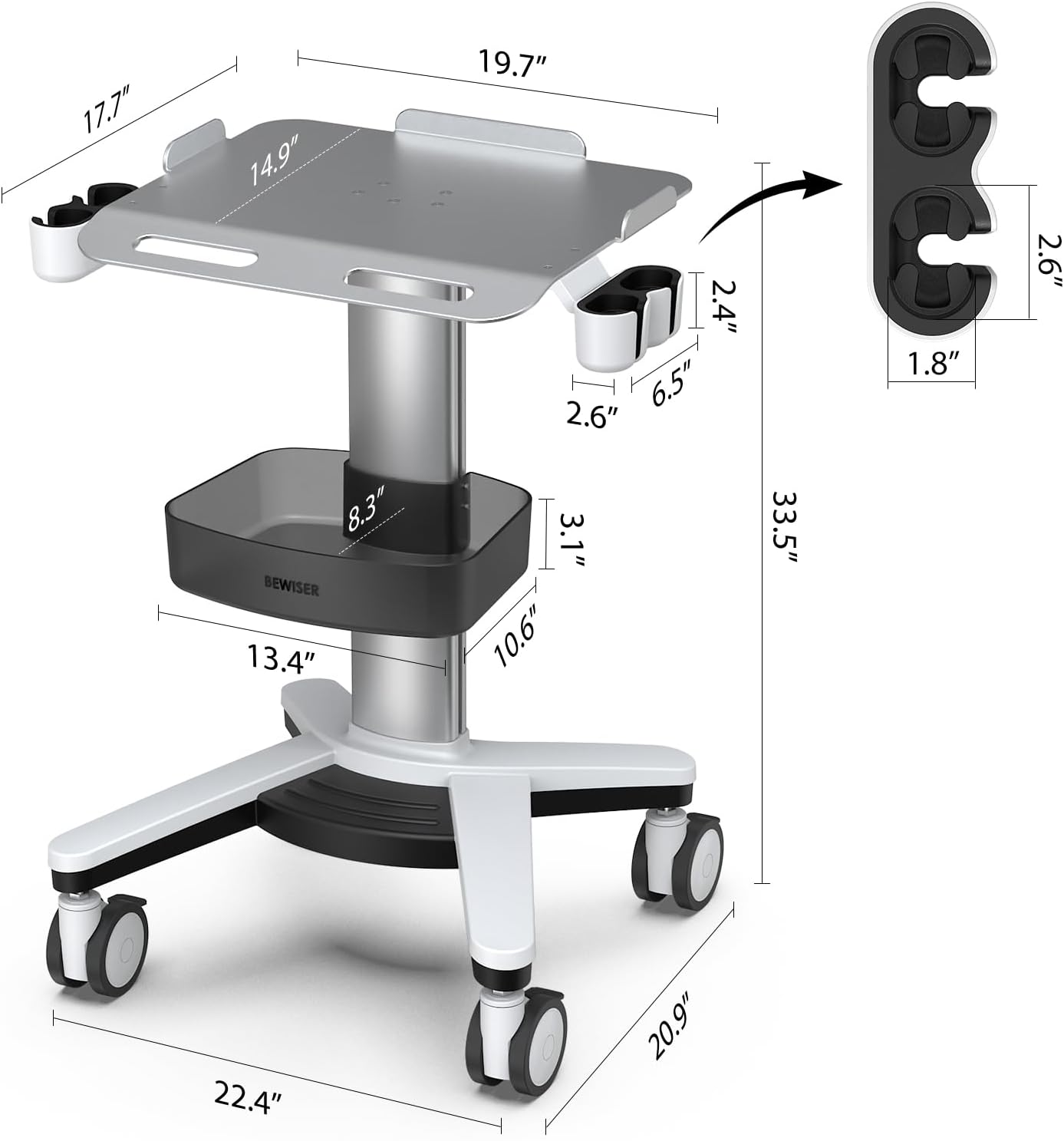 | Additional Features | Water-resistant, Pressure-resistant, Corrosion-proof, Static-proof, Collapse-resistant, Scratch-proof, Lockable wheels, Silent mobility, 360° rotation, Oral scanner holder, Storage tray |