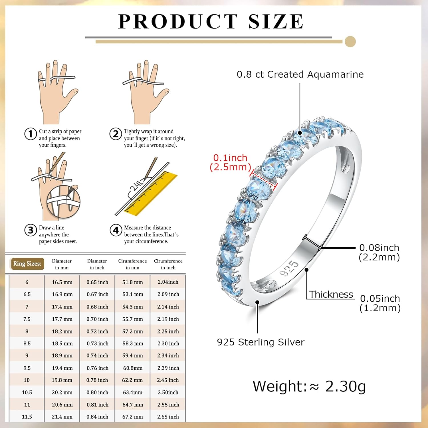 | Material | 5a cubic zirconia, aquamarine |