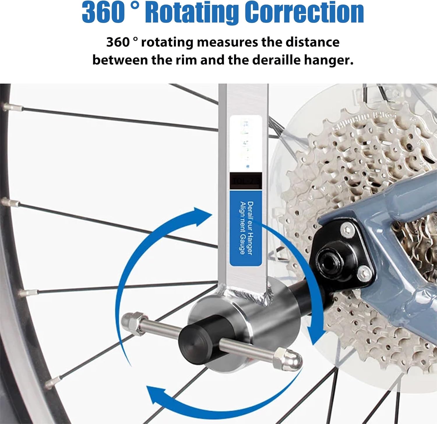 This Bike Derailleur Hanger Alignment Gauge Tool is a must-have for every bike enthusiast, whether you're a professional mechanic or a DIY bike owner. Crafted with high-quality 304 stainless steel, this derailleur hanger alignment tool is built to last and provide accurate measurements for optimal gear-shifting performance.Wide Compatibility: Bike derailleur hanger alignment gauge tool works seamlessly with bike wheel 20 to 29 inches, working with high-end road bikes, MTBs and everyday bikes, regardless of whether their derailleur hangers are removable or notPrecise Alignment: Bicycle wheel derailleur hanger alignment tool allows you to measure and straighten misaligned shift brackets so as to achieve smooth and accurate gear shifting, enhancing your overall cycling experienceEnhanced Strength & Accuracy: Bike derailleur hanger alignment gauge tool features an improved large inner shaft for added strength, with tighter tolerances enabling enhanced accuracy during the alignment processStable Operation: Equipped with a ball plunger, the bike wheel derailleur hanger alignment tool securely holds itself in place with controllable play, ensuring stability during use, preventing any unwanted movement that could affect the alignment accuracyVersatile Design: Bike derailleur hanger alignment tool comes with an interchangeable threaded tip that provides extra clearance and reach for most frames, increasing the tool's versatility and allowing it to work with a wider range of bike designsDurable Construction: Made of 304 stainless steel and aluminum alloy with chrome plating, the wheel derailleur hanger alignment tool offers excellent longevity and corrosion resistance, capable of withstanding the rigors of regular use, built to last for years to comeSPECIFICATIONModel: TOL-2.3Material: 304 stainless steel, aluminum alloyWeight: 1.94 lb.PACKAGE1 x Bike Derailleur Hanger Alignment Gauge Tool