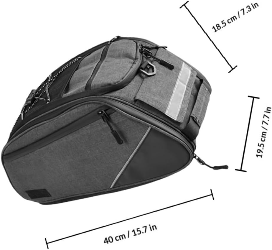 Package Include 1 x Bike Bag Characteristics -Color:Black cycling accessories -Material:Nylon bike supplies -Size:40.00X19.50X18.50cm/15.72X7.66X7.27in bike bagsGoods Descriptionmountain bike accessories for men The bag has the proper amount of compartments to keep everything organized.bike supplies It can be removed from the bike and install easily.bike pouch This is a great bag and doesn't get in the way when you're riding.bicycles seat bag This bike rear seat bag is designed for moderately long rides