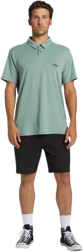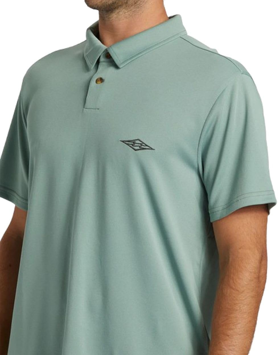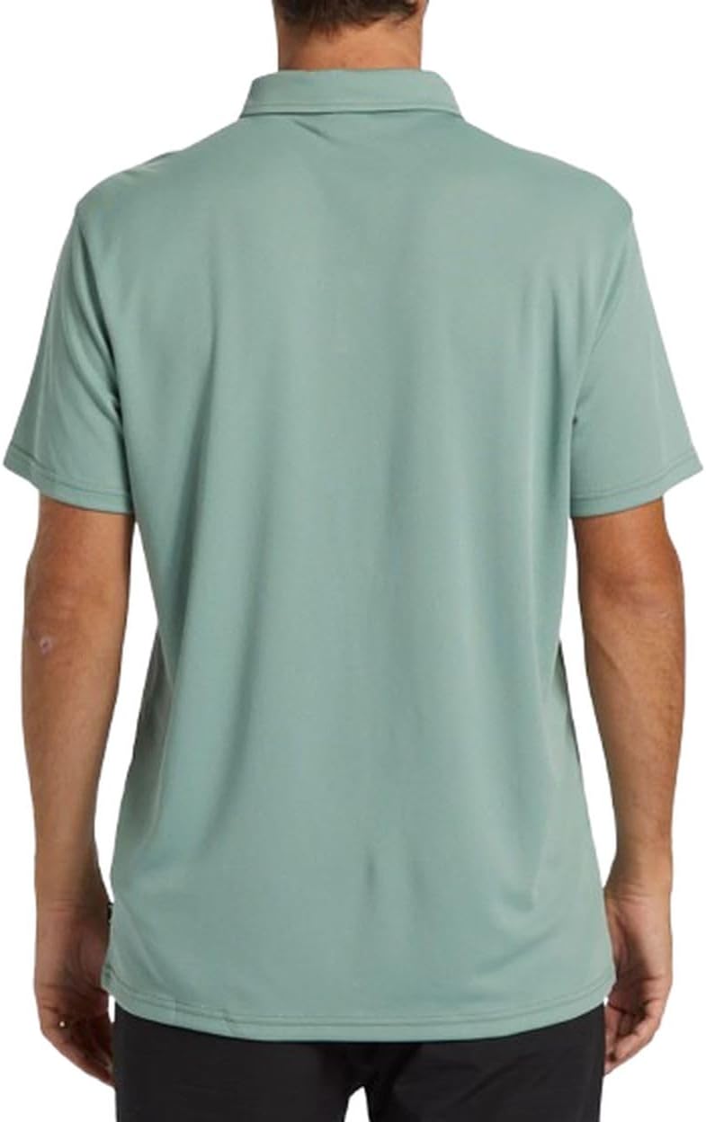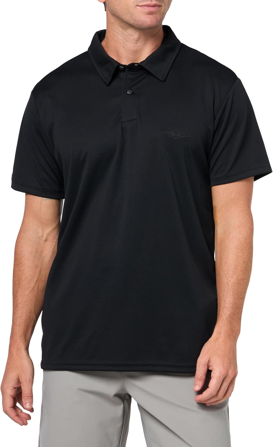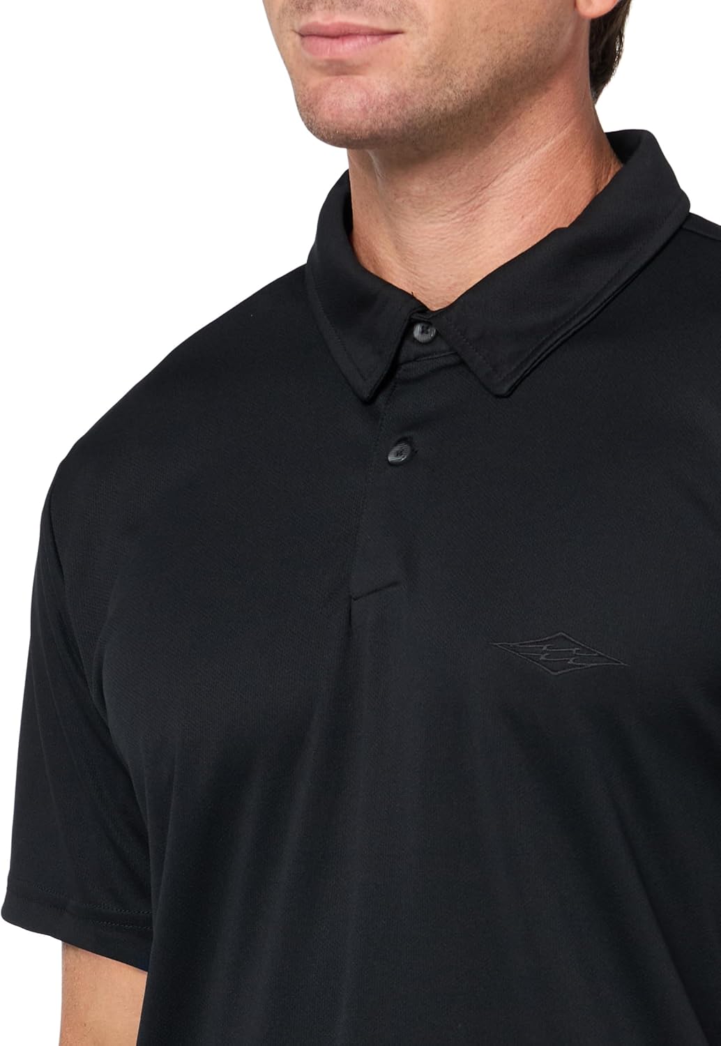 Short sleeves polo t-shirt for men. Features include: Fabric: 100% Recycled polyester double knit mesh fabric [125 g/m2], collar neck, short sleeves, button closure, and a softhand screen print at chest and Woven arch logo clasp label at bottom side seam.