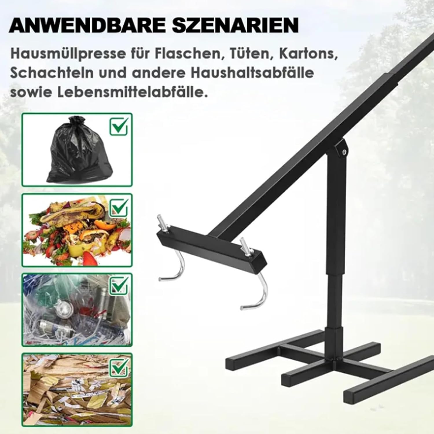 Feature: Durable Versatile Waste Recycling Tool Free Up Space In Bins Specification: Product Name: Wastemate Bin Compactor Material: Iron Size: Compression head 9.8 x 11.8 inches Weight: About 3Kg Package Includes: 1 pc * Wastemate Bin Compactor Note: Please allow 1-5g/1-2cm differences due to manual measurement Due to the different monitors and different light, the picture may not reflect the actual color of the item. Thank you for your understanding Rated voltage (appliances or chargers): AC110-240/50HZ;