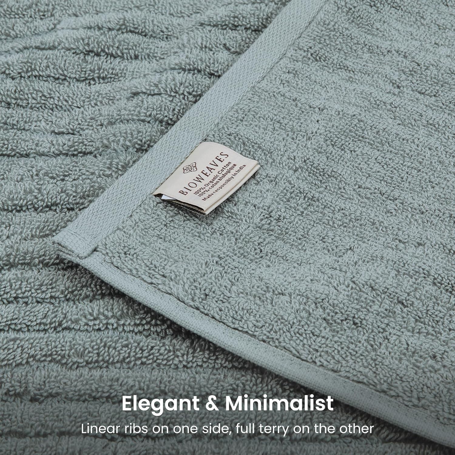 Bioweaves was founded with the consideration that all products we make and buy as a society can be rooted in a conscious thought for its impact on our planet.Bioweaves Organic Cotton Ribbed Towels:2 ply super soft low twist 100% organic cotton yarns usedDense and heavy 700 GSM construction with high pile heightSuper soft & fluffy hand feel along with fast absorbencyGenerously sized: Bath Towel - 30 x 58 inches, Hand Towel - 20 x 30 inches, Washcloths - 13 x 13 inchesSuitable for homes and hotelsMade in India at a socially responsible facilityCare Instructions:Wash before first useMachine wash cold on a gentle cycleTumble dry mediumDo not bleach