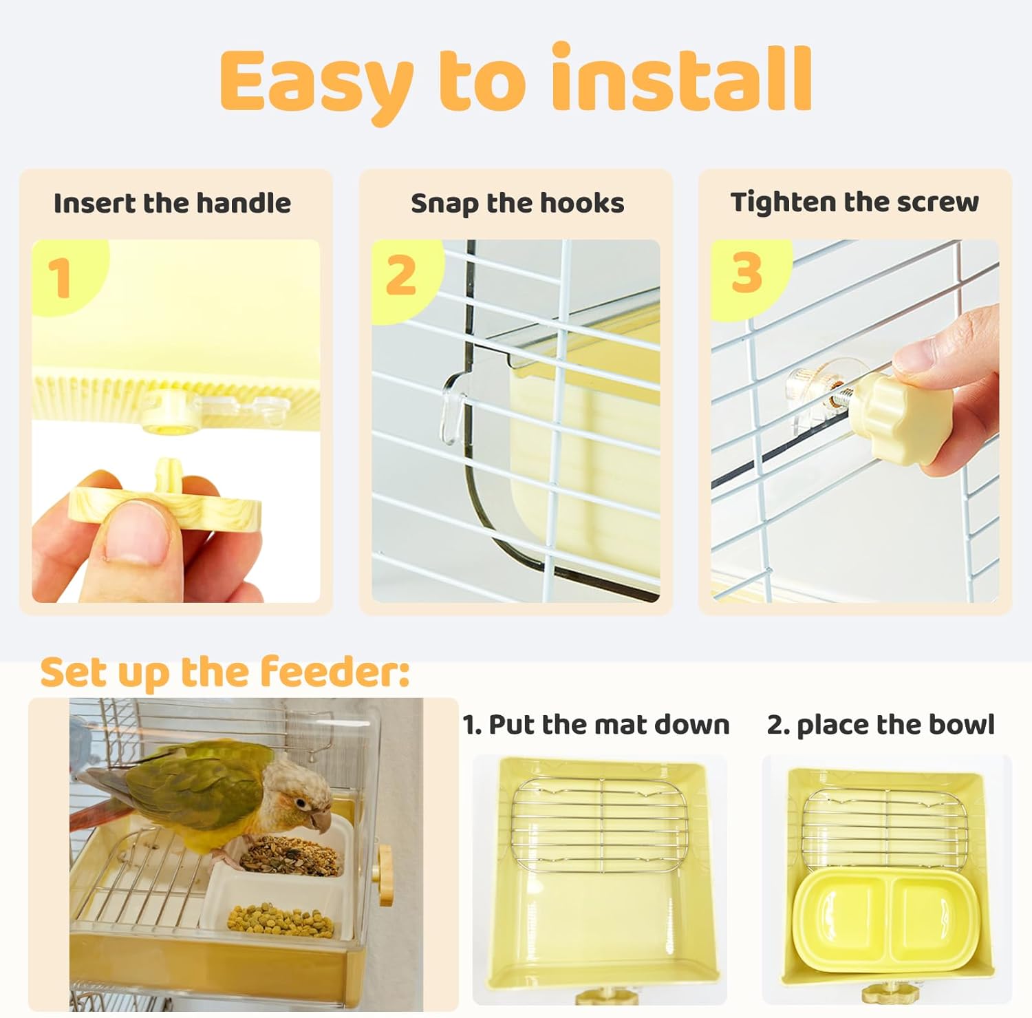 | Included Components | 1* stainless steel mesh floor mat, 1*bird bath box, 1*ceramic bowl |