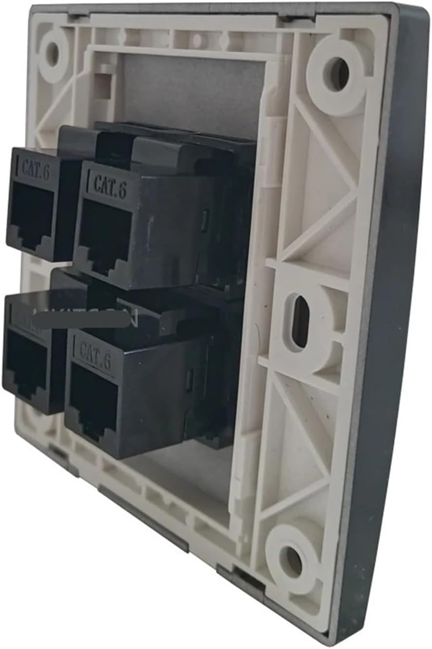 Wall Plates & ConnectorsColor: BlackPorts: RJ45x4- RJ45 version: CAT6Genre: Girl-to-girlDimensions: 86x86mm.Panel material: plasticEasy to install and connectScrew hole distance: 60mmInstallation: Female to female connectionColor: BlackSize: 86x86mmScrew hole distance: 60mmPanel material: smooth/resistive PCPorts: CAT6 RJ45 x 4RJ45 Type: Female to Female