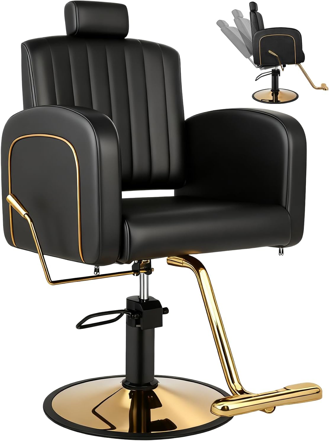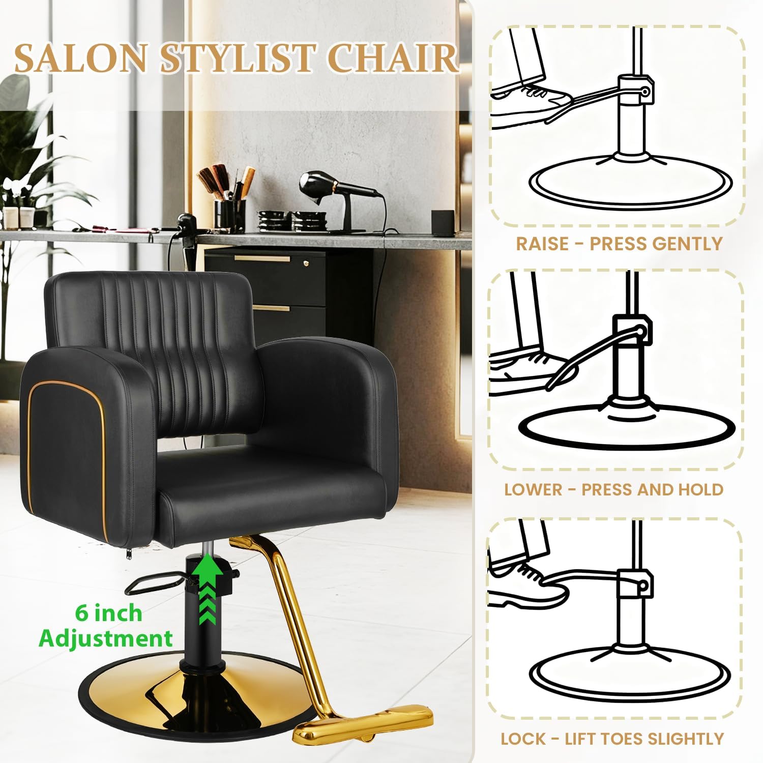 Upgrade your salon experience with this professional-grade salon chair for hair stylists, designed to provide both style and function. Made with high-quality materials and a heavy-duty hydraulic pump supporting up to 350 lbs, this hair salon chair combines luxury, comfort, and durability in one versatile beauty station.Covered in waterproof, scratch-resistant premium PU leather, this salon chair is easy to clean and built to last. The 360° rolling swivel and adjustable height range of 35.8"–41.8" ensure effortless maneuvering during cuts, coloring, styling, or tattooing. The seat width of 19" offers spacious comfort for all clients, while the ergonomic backrest and integrated armrests provide reliable support throughout their appointment.✅ Special Features:360° rotating seatAdjustable hydraulic lift (6" lift range)Ergonomic armrests and back supportAnti-skid base for stabilityCommercial-grade PU leatherMax load: 350 lbsEasy to assemble and instructions includedPerfect for barbershops, beauty salons, tattoo studios, spas, and home salons, this stylist chair adds sophistication to any workspace while offering maximum convenience. Whether you’re a barber, hairstylist, or makeup artist, this chair will elevate your client experience and workspace functionality.📦 Product Dimensions & Specs:Seat Width: 19"Adjustable Height Range: 35.8"–41.8"Base Diameter: 22.9"Max Load Capacity: 350 lbsMaterials: PU Leather, High-Density Memory Foam, Steel+Wood Frame