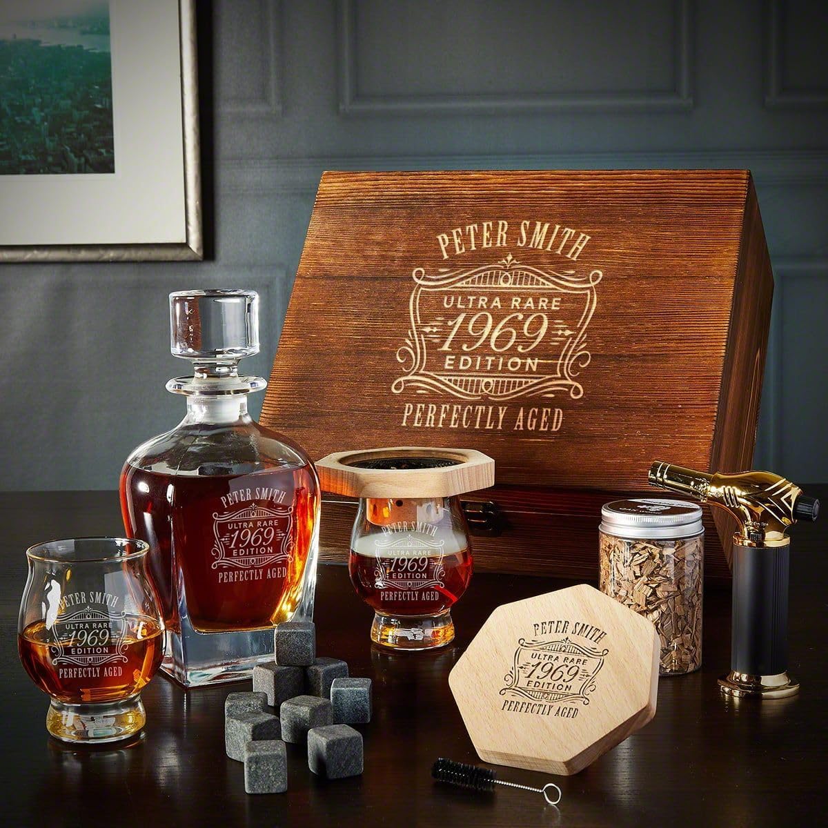 Create a new experience of whiskey tasting with this custom halo black diamond whiskey smoker kit with torch! The set includes two glasses, a smoker, a torch, wood chips, a cleaning brush, and a metal filter. The smoker top and glass are engraved with the selected design. With this smoker kit, you can add new smoke-infused flavors to your favorite whiskeys and your friend's drinks too! This whiskey smoker is the ultimate retirement gift for your father or an anniversary gift for your husband! Butane is not included.