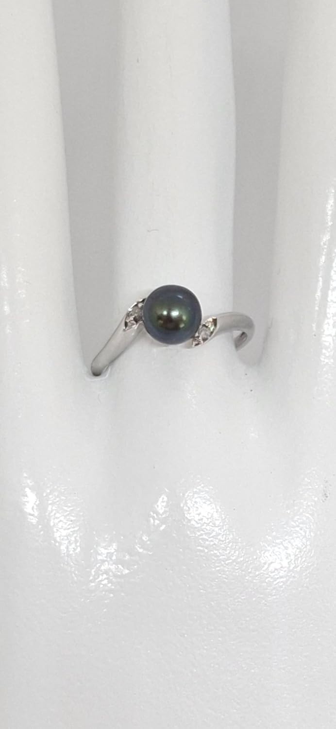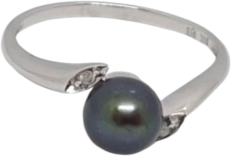 BLACK Freshwater Pearl/Diamond 14K White Gold Ring. 14K White Gold Pearl Ring. Diamond Black Pearl Ring. Black Freshwater Pearl LOVER Ring. Product Info: - Stone: Freshwater Pearls / Diamonds. - Pearl Color: Black Pearl - Pearls size: 6-7mm round. - Sparkling diamonds. - Total Diamonds: 2 pts. - Metal: 14K White Gold. - Ring Size 7 - Made in USA. - Nice Gift Box Included