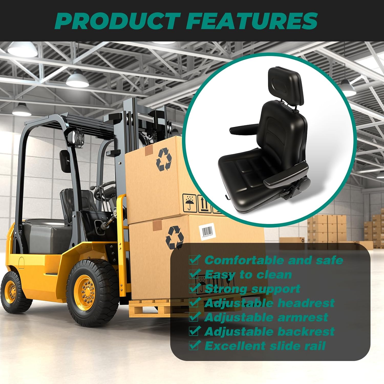 Specification:Color: Black Size: 27.5 in* 18.5 in* 15.8 inPackage List:1* Universal tractor seat, the received product is shown in the pictureAdvantages: A.Compliant with Human Mechanics: high rebound sponge, not easily dented, making the lumbar and cervical vertebrae more comfortableB.Adjustable Headrest: Provides comfortable support for the head. Multi level adjustment, suitable for people of different heights, to avoid fatigue
