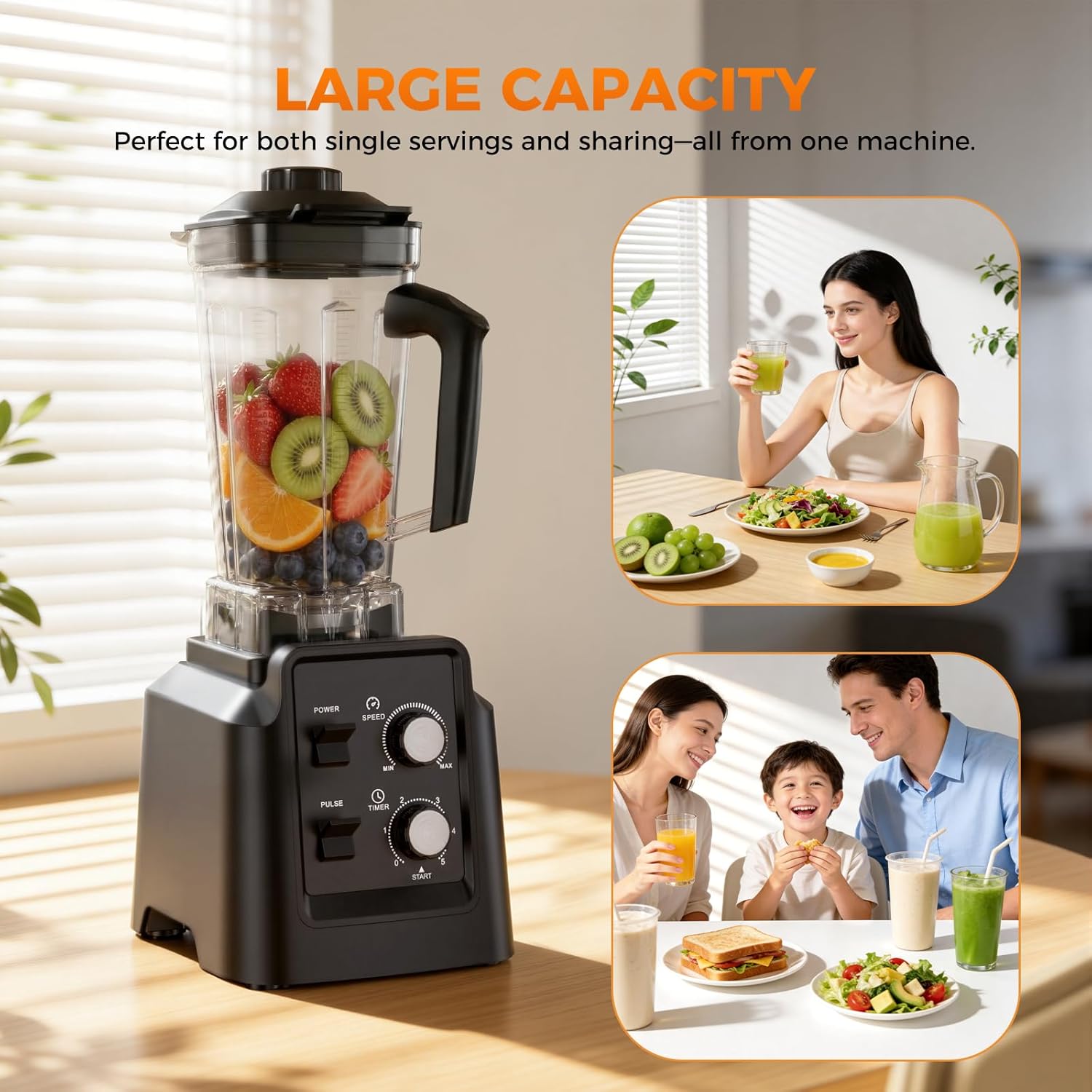 • 【Large 68oz Countertop Blender for Family Use】 - The 68oz BPA free pitcher makes multiple servings at once, ideal for family breakfast smoothies, meal prep and entertaining guests. A reliable blender for kitchen use when preparing smoothies, sauces, baby food, nut butter or homemade soups.