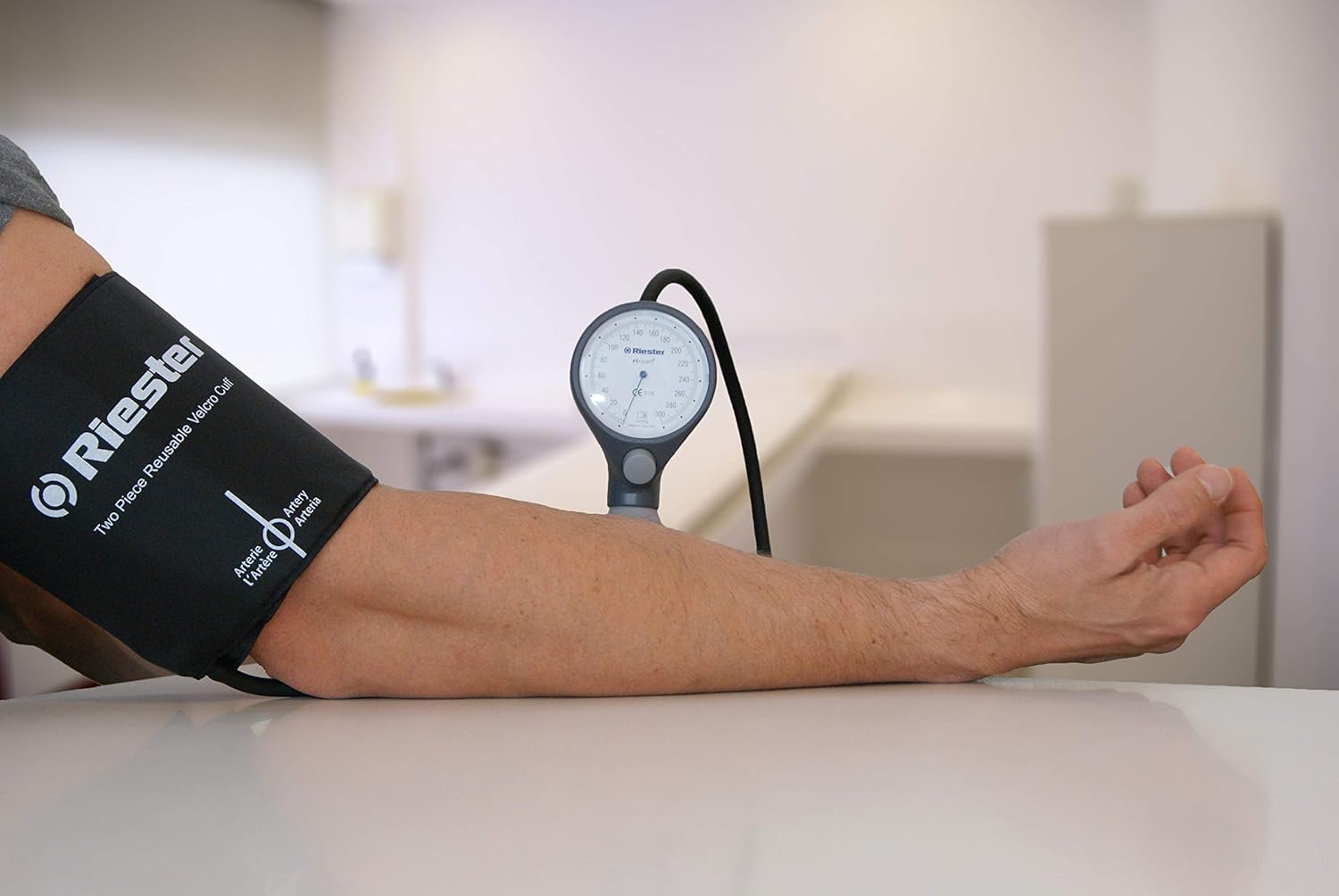 Riester Ri-san Palm Style Aneroid Sphygmomanometer. German high quality, modern, attractive designed aneroid sphygmomanometer, with centrally positioned air release valve. Available in colour - Grey. With multi configurations of different cuffs available to meet your needs. Handheld, portable, palm sized, aneroid Sphygmomanometer with centrally positioned air release valve that enables left or right hand operation. The precise fingertip control is ideal for self-measurement with integrated stethoscope available. Validated by the British and Irish Hypertension Society. Features and benefits for both the clinician and patient: Available in a choice of four different colours - slate grey, blue, saffron and green Suitable for left or right hand operation with trigger-style air release valve Sturdy ABS plastic enclosure Precision, virtually wear-free air release valve with precise adjustment Integrated stethoscope version available Maximum error tolerance of ±3 mmHg Microfilter protects air release valve and measuring system Easily legible display, Ø 64 mm (2.5 in), from 0 to 300 mmHg Lifetime precision* Comprehensive selection of different sizes and versions of single tube cuffs Vinyl zipper case