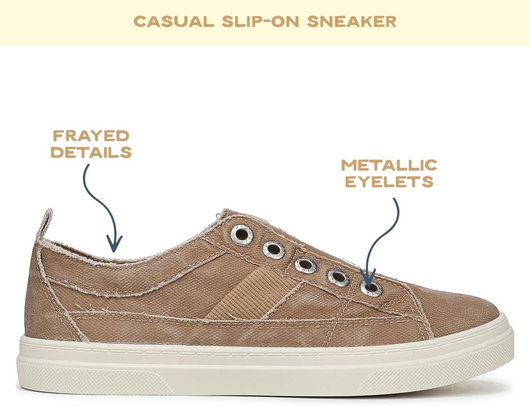 Slip into good vibes with the Hangout Slip On Sneaker from Blowfish Malibu—a women's slip on that’s equal parts carefree and effortlessly cool. Features include metal eyelets, stitching details for an extra touch of style, and a textured outsole that keeps every step grounded and confident. These women's sneakers are ready for all your laidback adventures and coastal getaways. Canvas or linen upper. Easy slip-on fit with heel pull tab. Round toe. Reinforced heel tab for added durability. Stitching detail along seams. 1 inch flat heel.