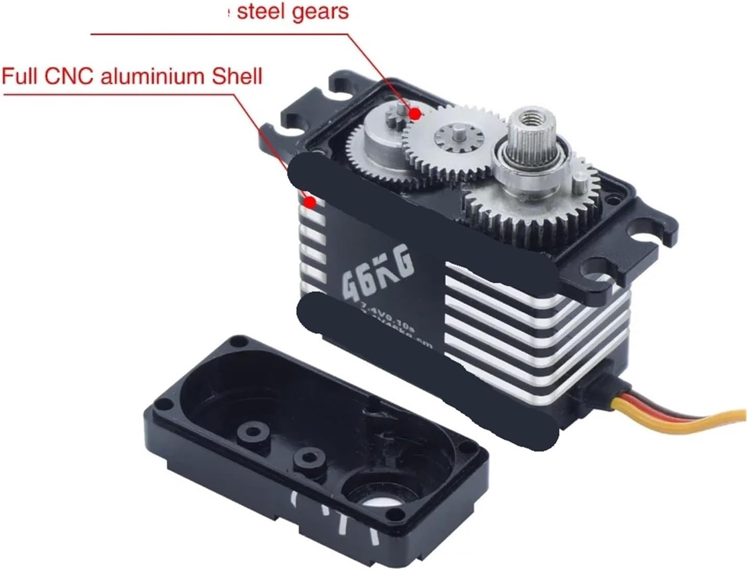 ServosModel: BLS-HV7146MGColor: BlackDead zone: 1sPulse width: 1000-2000s=90°Pulse width: 500-2500s=180°Working frequency: 1520s/330hzMotor: brushless motorOperating speed (6V): 0.12 seconds/60°Operating speed (7.4V): 0.10 seconds/60°Stall torque (6V): 37.6kg.cmStall torque (7.4V): 47.8kg.cmDimensions: 40.5 x 20.5 x 36 mmNumber of gear teeth: 25TControl angle: 120 degreesWeight: 71gPackaging information:Packing size: 95*70*30mmPackage weight: 118g or not: No batteryQuantity: 1 pieceIs it battery/power supply: NoIs it a charger/adapter: NoDoes it include batteries: No