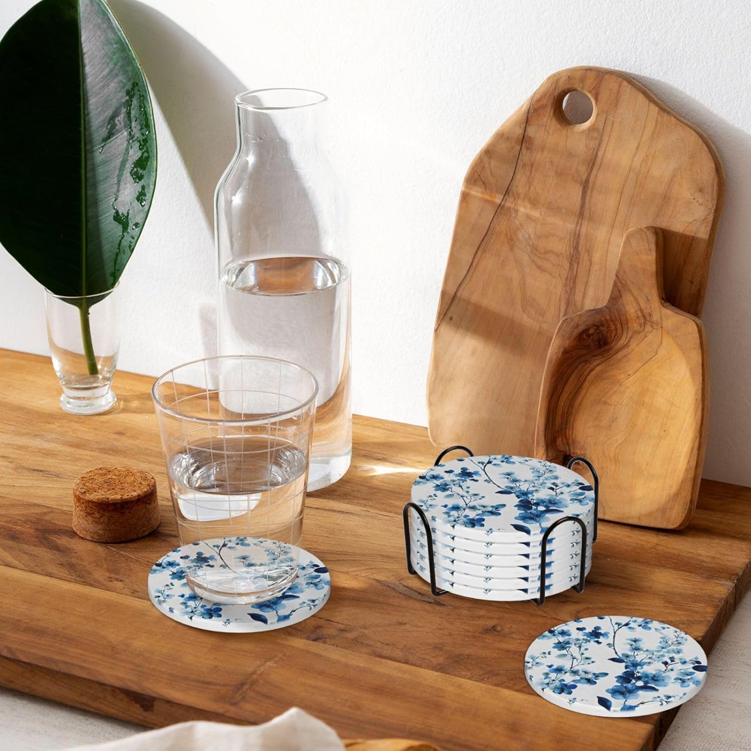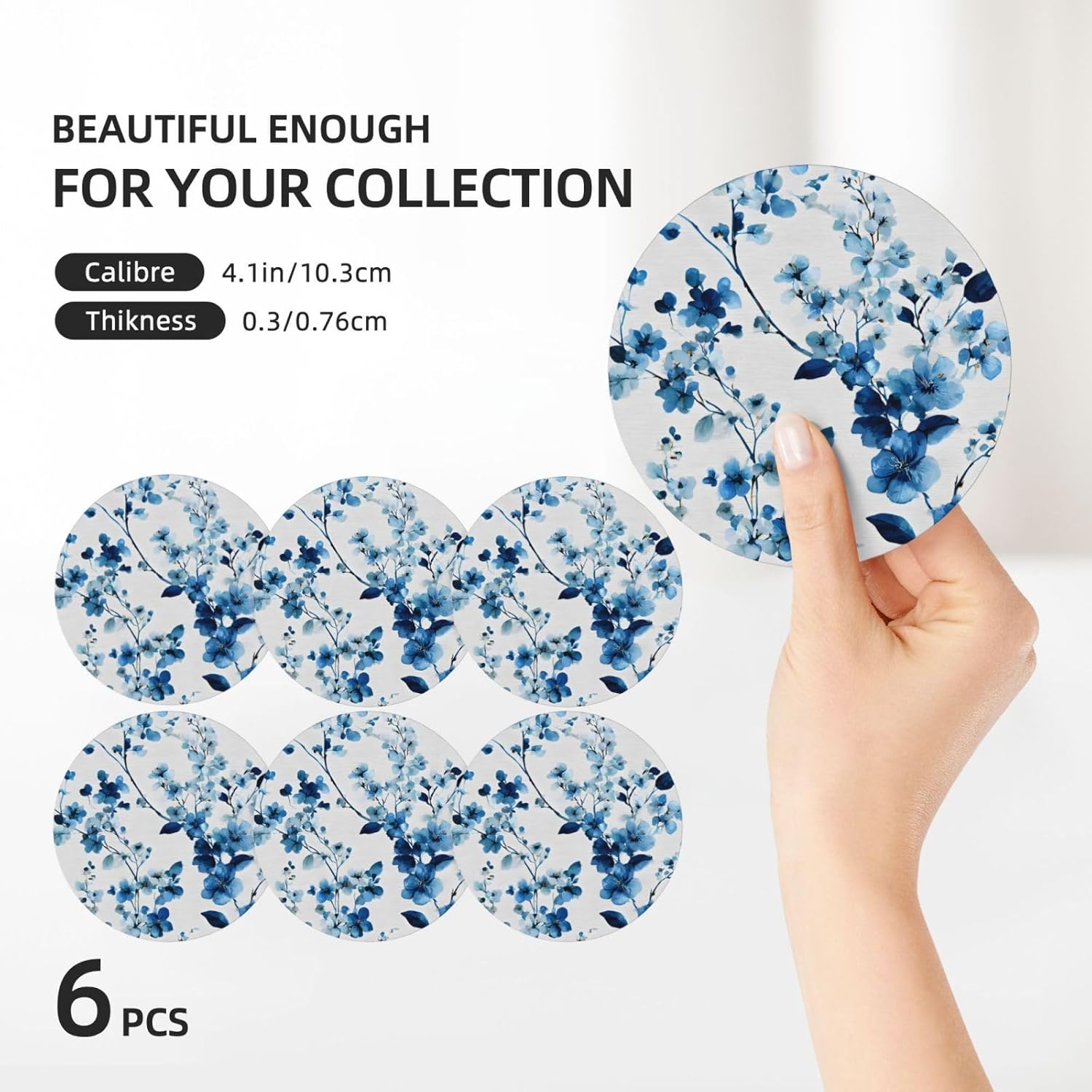 Product Name: DCEHGEW Ceramic Drink CoastersMaterial Type: Ceramic with cork bottomSize: Round: 4.1 x 4.1 inches, Square: 3.9 x 3.9 inches, Hexagon: 4.3 x 3.7 inchesPattern: Blue and white floral pattern About Our Ceramic Absorbent Coasters:Product Features - Crafted from high-quality ceramic, these coasters are odorless and eco-friendly. Their superior absorbency keeps your surfaces dry by quickly soaking up spills from coffee, cola, and other beverages within 10-15 seconds.Applicable Scenarios - Perfect for adding a stylish touch to your kitchen, living room, bar, hotel, or restaurant. These coasters are an ideal present for birthdays, Mother's Day, Father's Day, Valentine's Day, anniversaries, housewarming celebrations, or Christmas.Accessory Structure - Each set includes 6 ceramic coasters with cork bottoms, accompanied by a sleek black metal stand for organized and aesthetic storage. Choose from three different shapes to suit your style and needs.Washing Instructions - Easily clean these coasters with water or a damp cloth.Special NoteDue to different measurement methods, a deviation of up to 0.3 cm in size is considered normal.Please Note:The product images are for reference only. Actual products may vary slightly due to production factors such as batch differences and machine settings. Minor variations in color, position, and size are normal and not considered defects. Thank you for your understanding!Customer Service:We want to make sure you have an amazing experience with us. Please contact us with any feedback you may have. We love to hear from you and usually respond within 12-24 hours.