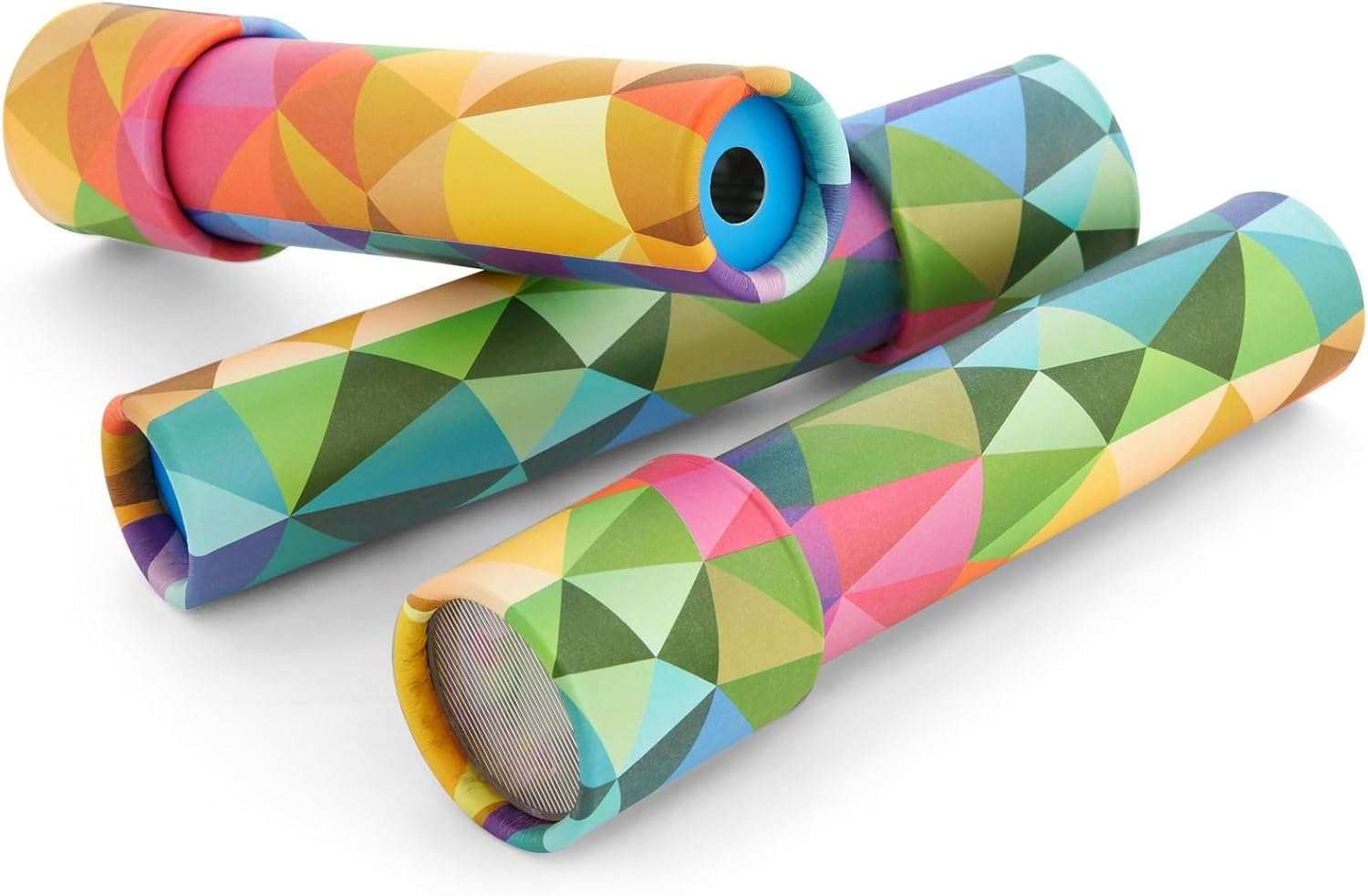 Blue Panda's Rainbow Style Prism Kaleidoscopes are designed to inspire young minds aged 4 and up. This set includes three kaleidoscopes, each crafted from durable plastic, measuring 8 inches in length with a 1.3-inch diameter. These kaleidoscopes are perfect for exploring the interplay of light and geometric patterns, fostering creativity and imagination in children. As the seasons transition to warmer weather, these kaleidoscopes become an excellent tool for engaging children in outdoor activities. They provide a screen-free method for children to delve into the wonders of symmetry and reflection, essential concepts in both art and science education. Use them in educational settings to encourage hands-on learning, making the exploration of light and color both fun and educational. These kaleidoscopes are also a delightful addition to social gatherings, such as birthday celebrations. They can be included as part of retro-themed party supplies, serving as a memorable memento for young guests. Their manual operation ensures continuous amusement without the need for batteries, making them convenient for travel and easy to pack in birthday goodie bags for kids. Each kaleidoscope in this bulk set is designed to withstand the enthusiastic handling of young adventurers, ensuring durable entertainment. Whether used in classrooms, at parties, or simply for personal amusement, Blue Panda's kaleidoscopes provide versatile entertainment that enriches any occasion. Embrace the joy of discovery and creativity with these vibrant and engaging color viewers, reflecting Blue Panda’s dedication to fun party supplies.