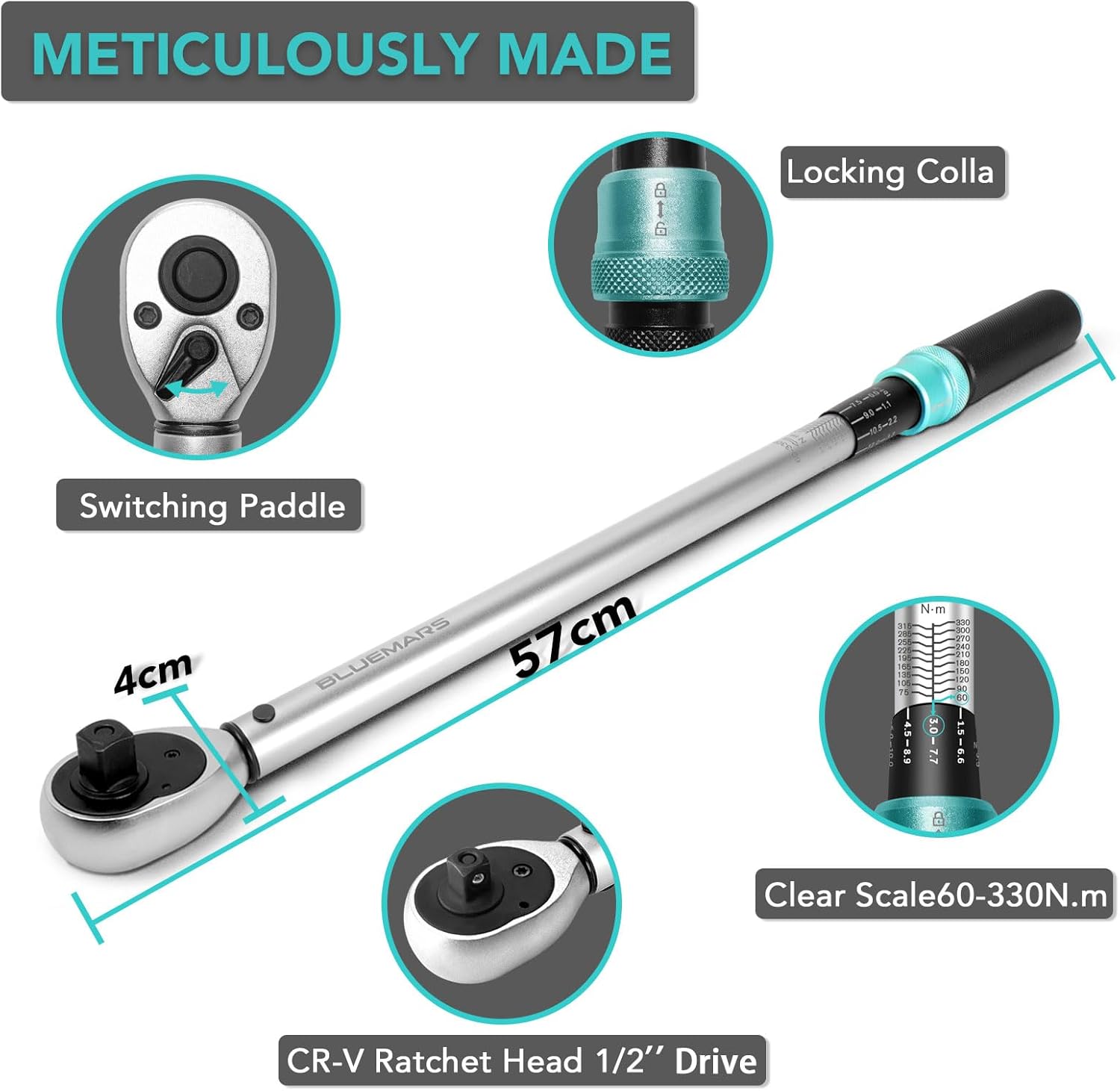 BlueMars 8PCS 1/2" Sq Drive Click Torque Wrench Set 60-330Nm Dual-Direction Adjustable Torque Wrench