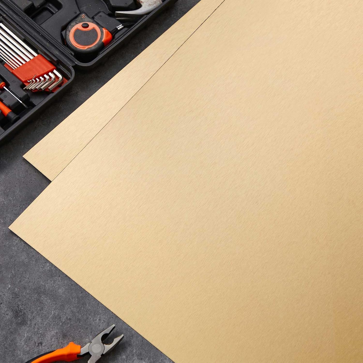 Features: Benefit from the qualities of aluminum alloy, renowned for its exceptional hardness and corrosion resistance. This material offers excellent processing and welding capabilities, making it a good choice for projects demanding strength and reliability. Trust in the robustness of these aluminum sheets for both indoor and outdoor applications. Specifications: Material: brushed gold aluminum, PE, PVDF Color: gold color (front), gray white (back) Size: 36 x 24 x 0.24 inches Package includes: 2 x Aluminum composite plate Notes: Manual measurement, please allow slight errors on size. The color may exist a slight difference due to different screen displays