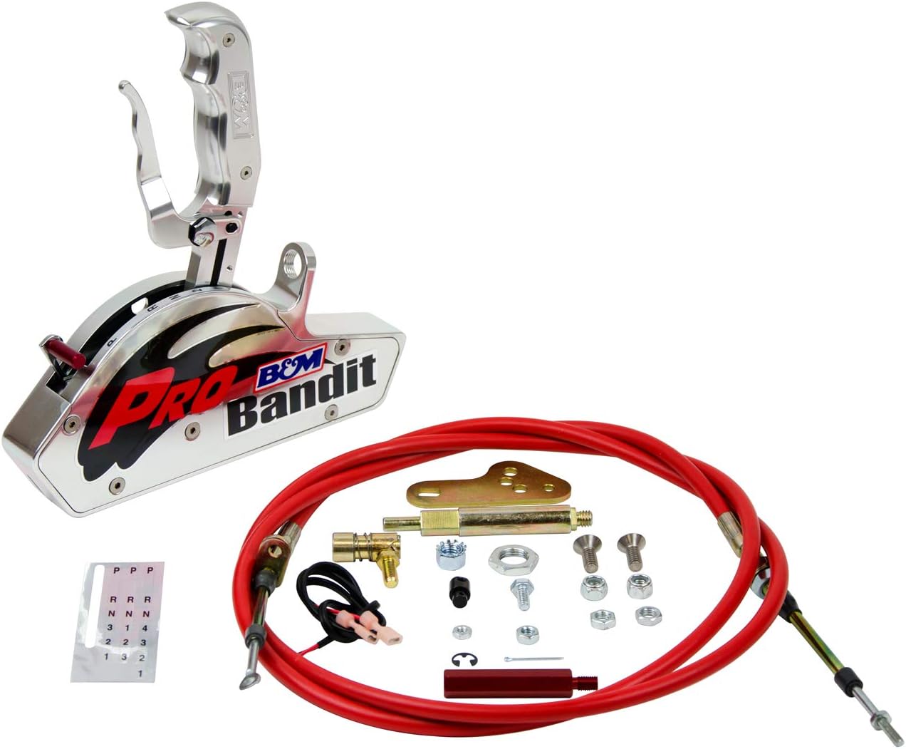 Fits 1962 to 1973 GM Powerglide automatic transmissions designed for rear engine dragsters. The cutting edge Magnum Grip design coupled with the race tested performance of the Pro Bandit shifter is an unbeatable combination! Complete kit includes the features of the standard Pro Bandit plus the billet aluminum Magnum Grip handle! Includes an 8 Ft. long Super Duty Race Cable, B&M Powerglide Pro Lever, quick disconnect and cable extension (CO2 or electric solenoid may be used on this shifter for a Powerglide transmission). All Bandit shifters use the same gate plates as found in the Pro Stick shifters. See accessories for additional racing shifter accessories. Dimensions are 9.96 in. long, 10.5 in. high and 1.33 in. wide.