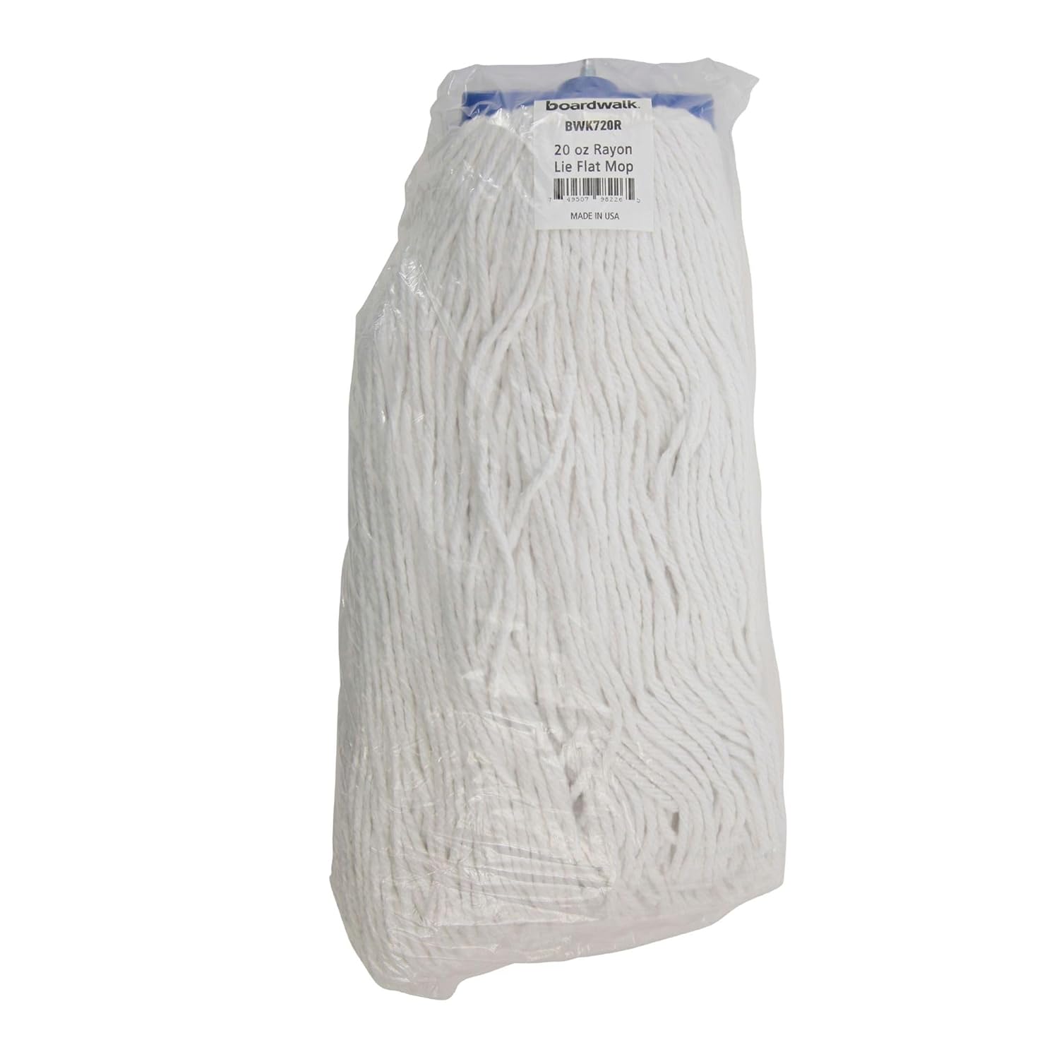 Boardwalk Cut-End Lie-Flat Economical Mop Head is constructed with premium, four-ply yarn for added absorbency. Built with a standard 1/4" threaded bolt head for easy screw-in mop head change. The mop heads are held together and wrapped with a galvanized metal outerband for the utmost in durability. The mop lies flat on floor and is designed for use with a lie-flat screw-in mop handle, which is sold separately.