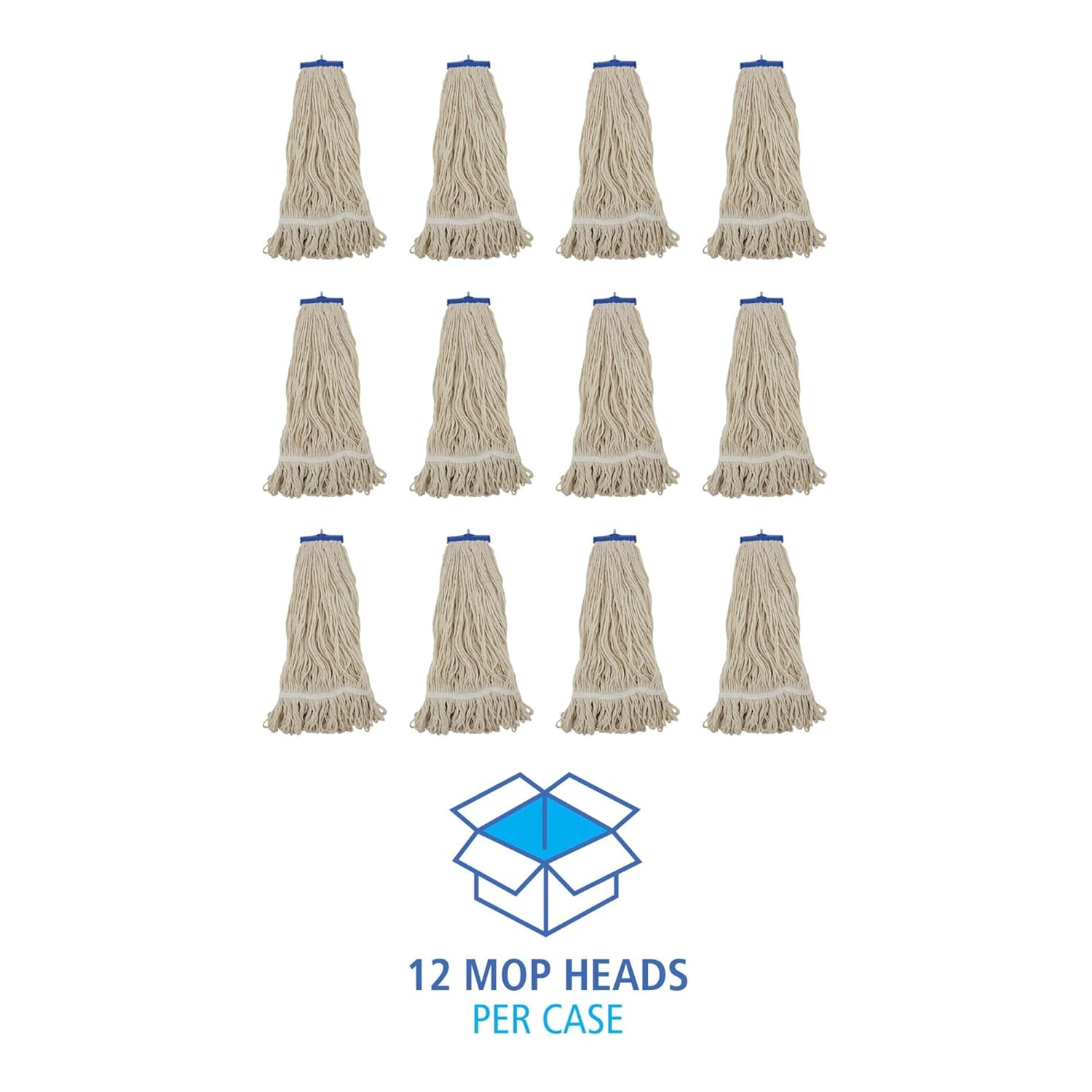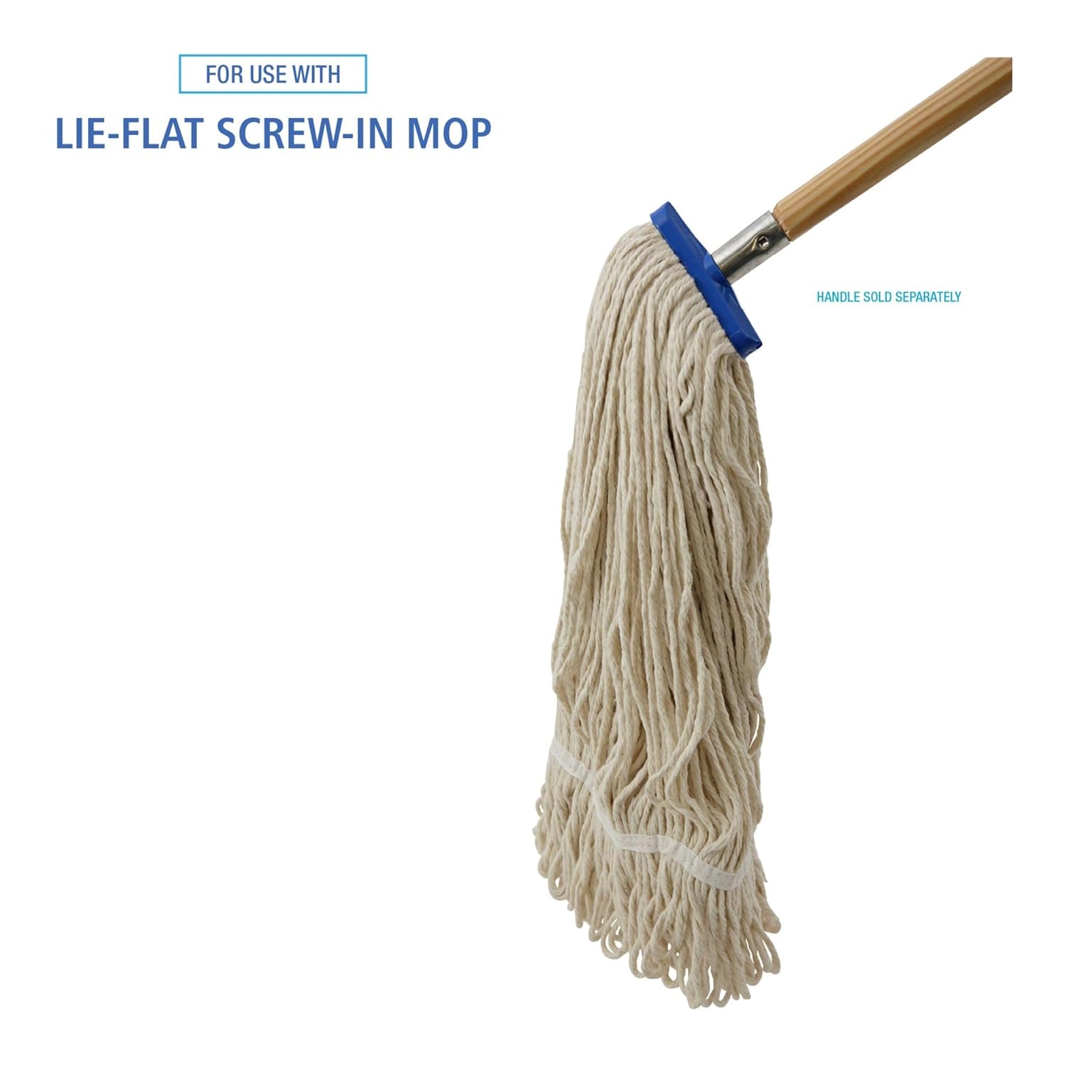Looped-end design lint less, reduces fraying and unraveling; four-ply premium yarn. Durable double-sewn tail band prevents tangles and provides more floor coverage with each stroke. Mop head lies flat on the floor for broad coverage. Plastic, molded cap with metal 1/4-in. threaded bolt head.