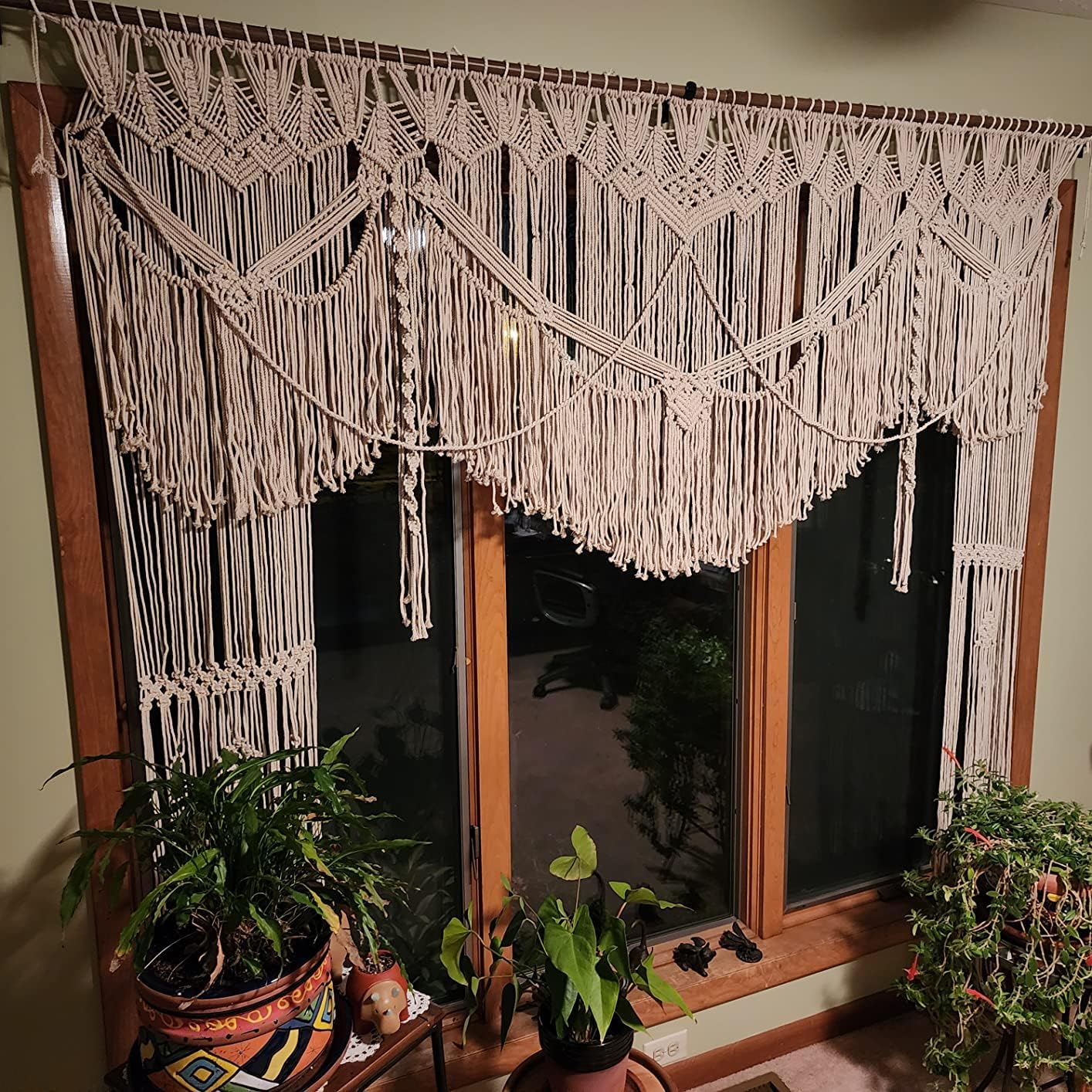 BOHO MACRAME WALL DECOR:- knitt world are proud to offer you this premium high quality bohemian wall hanging. Beautiful rope artwork will look stunning in your home, living room, office, bedroom or any empty space. Easy to hang and timeless design, you can see the workmanship and the quality in the tight twisted cotton cords and elegant fringe.CHIC WALL DECOR:- Classic, timeless wall hanging design, incorporating modern lines with a hippie, aztec, vintage, surfy, farmhouse style. Wall tapestries are veratile and can adapt and add to any existing style. They hang handsomely above your fireplace, headboard, or entertainment center accenting your existing artwork and interior decor.AUTHENTIC CORD AZTEC TAPESTRY WALL HANGINGS:-Timeless handmade style cording and elegant fringe draping creates a beautiful, slender, wall banner which can easily be hung and displayed on drywall, stone, brick, or wood surfaces. Hang your tapestry using single nail or hook. Looks great in your home & sits flush against the wall.Macrame items:- macrame wall hanging, macrame accessories, macrame dream catcher,macrame plant hangers, macrame hammock, macrame jewelry, macrame lamp shade, macrame mirror wall hanging, macrame necklace, macrame table runners, macrame valance, macrame swing etc..!CUSTOM SIZE:-Please click on "Request a custom order" (just under the listing photos). Let me know the size of the curtain you need and I will create a custom listing for you. Our all items of macrame are sent without wood..!CARE INSTRUCTIONS:- Hand wash in cold water with neutral soap. You can also dry clean. Do not use a dryer and dry flat.If you have any questions and you need additional info don't hesitate to contact me :)