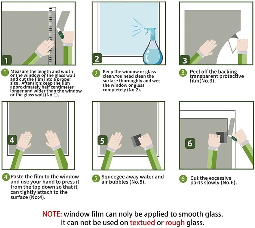 Smooth and clean glass surfaces for bathrooms, balconies, living rooms, bedrooms, bathrooms, offices, hotels.Protect skin and eyes from damage. No more annoying eyes entering your home.Reusable: PVC material provides extra durability and can be repositioned and reusedSemi-Private Window Film: Combines decor and privacy.Trim to desired size easily with scissors or utility .Material: PETFeature: Self-Adhesive,Static ClingSurface Treatment: EmbossedFunction: DecorativeFunction: Heat InsulationColor: ShowStick on: Door; Glass; WindowInstallation Instruction It can only be used on flat clean and smooth surfaces
