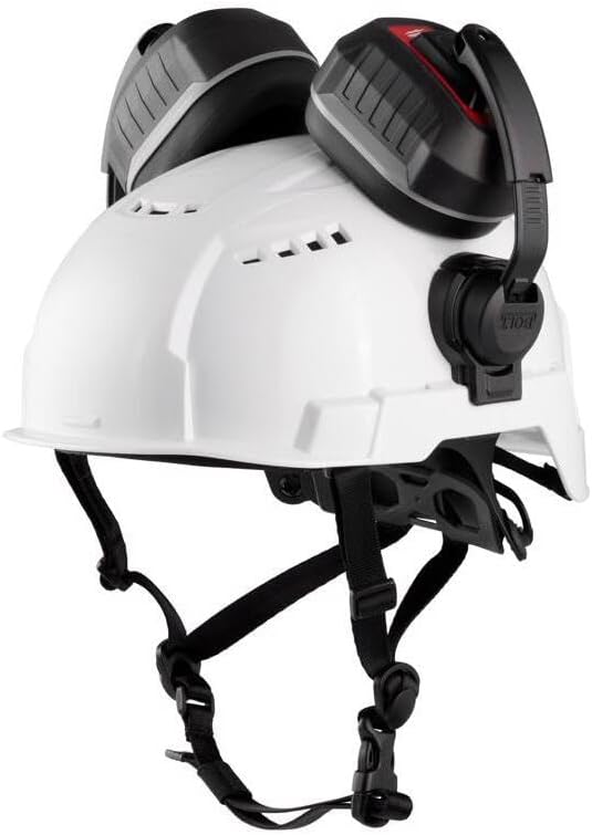 The Milwaukee Bolt Earmuffs are designed for adjustable, comfortable wear. These cap-mounted earmuffs provide an adjustable fit thanks to the center-mount design. The earmuffs also allow for balanced wear with a 360-degree rotational arm that can pivot to multiple storage positions when not in use. The comfortable, pressure-reducing cushion helps avoid pressure and discomfort when wearing the earmuffs for extended periods. These earmuffs have the indicated NRR to protect you against hazardous noise and are CSA Class A certified.