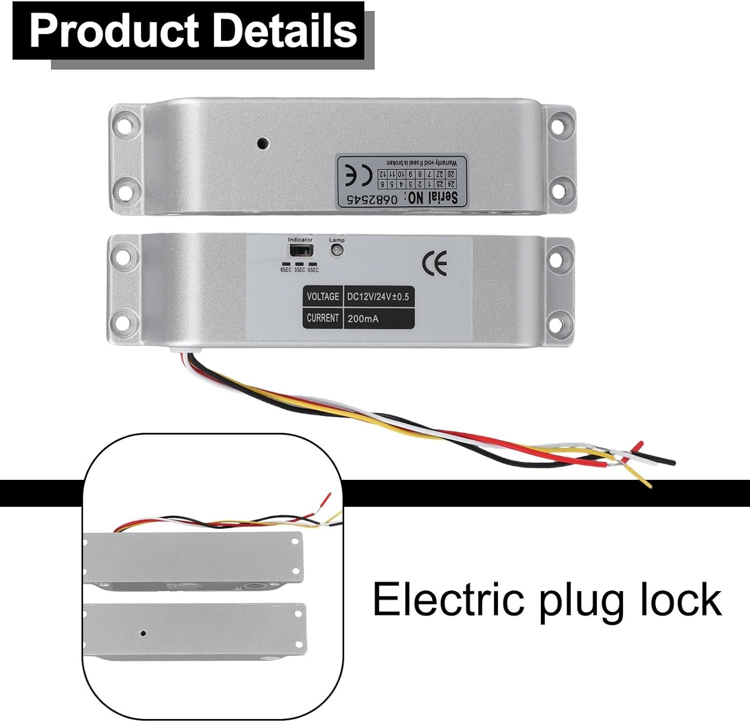 Product description Features:*Made of high-strength aluminum alloy material: Crafted from aluminum alloy with a exterior sandblasting process, this electric lock exhibits excellent texture, resistance, anti-slip properties, and enhanced durability.*Delay signal function: Equipped with a customizable delay feature, this electric lock allows for adjustable time settings ranging from 0-3-6 seconds, providing convenient and speedy for Access control.*Stainless steel lock tongue: The lock features a stainless steel lock tongue that remains locked even when power is off, optimal security until power is restored.*Efficient copper coil: With a copper coil, this electric lock offers excellent electrical conductivity, allowing for efficient energy utilization, minimized power losses, and quick heat dissipation.*Enhanced security with hexagon socket screws: Secured with hexagon socket screws, this lock's fixed panel provides heightened for protection against theft, guaranteeing the safety of your valuable property.Specifications:*Product Name: for Access control electric lock*Material:High-strength aluminum alloy*Size:150*34mm*Color:silver*Type: lock when powered on, for unlock when powered off*Voltage: DC12V-24V (adjustable delay)*Locking method: induction*Current: 1.2A in starting state, 120mA in continuous state*Coil type: continuous working type*Lock cylinder size: 12.5mm diameter stainless steel lock cylinder, extended length 15mmPackage Content:1 x Electric mortise lock Manufacturer Contact Information no