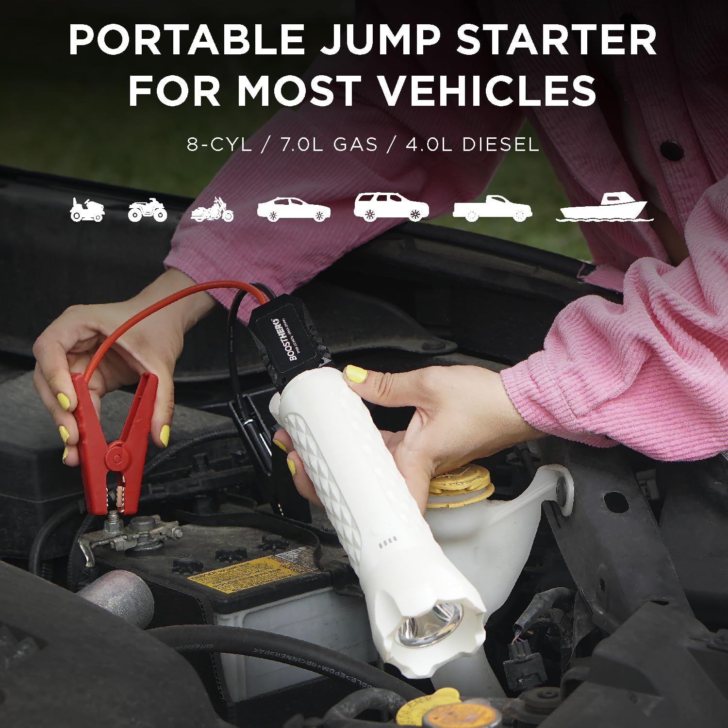 | Included Components | 24” Charging Cable, Carrying Pouch with Printed Instructions, Smart Jumper Cables with LED Light, USB Car Charger |