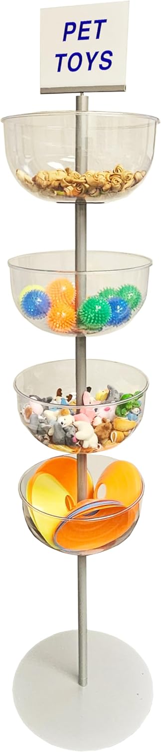 Enhance your product displays with this bowl tower featuring four clear bowls, providing a 360-degree view of impulse items. The transparent design effortlessly attracts customers, making it easy for them to see the products inside. Choose between a Flat Base or Caster Base for added mobility.